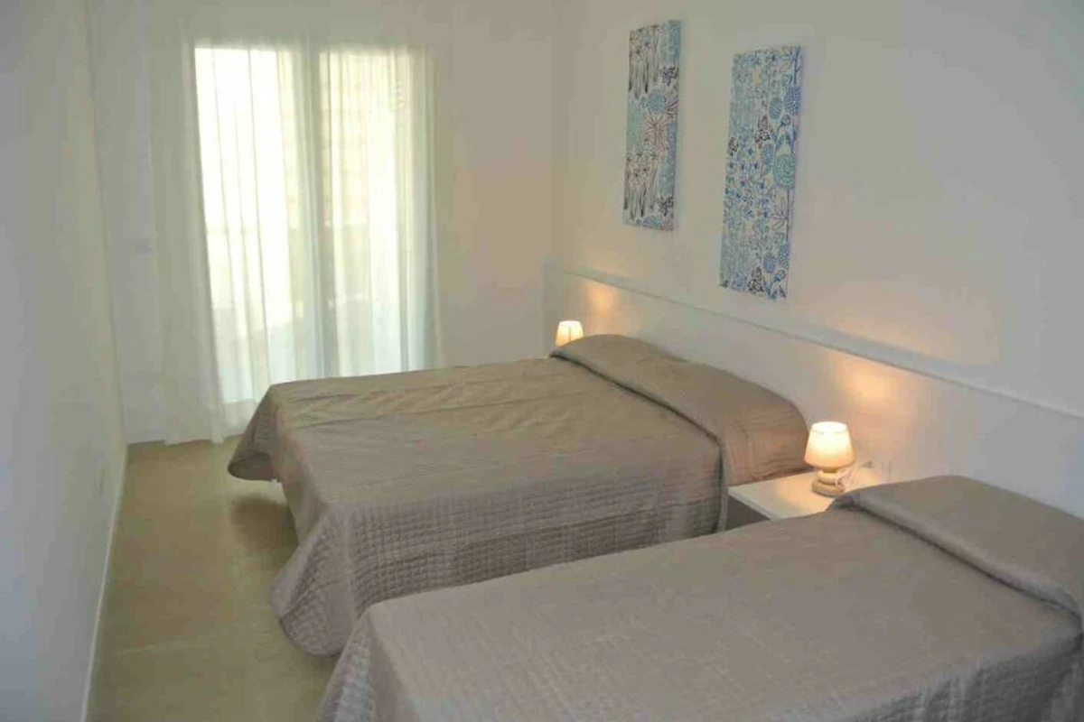 Die moderne 2 Zimmer-Wohnung Tipo B bietet Platz für max. 5 Personen und befindet sich im ersten Stockwerk. Die Wohnung verfügt über ein Schlafzimmer mit einem Doppel- und einem Einzelbett. Im Wohnbereich bietet ein Doppelbettsofa bei Bedarf zwei weitere Schlafplätze. Eine gut eingerichtete Kochnische mit Herd, Geschirr, Besteck, Töpfen, Mikrowelle, Kaffeemaschine, Geschirrspüler und Kühlschrank mit Eisfach befindet sich ebenfalls im Wohnbereich. Das Badezimmer ist mit einer Dusche, einem Waschbecken, einem Bidet, einer Waschmaschine sowie einem WC ausgestattet. Bettwäsche und Handtücher können auf Wunsch vor Ort gemietet werden (bitte beim Buchen reservieren). Die Wohnung verfügt zudem über einen überdachten Balkon, welcher mit Tisch und Stühlen zum Verweilen einlädt. Bei Bedarf können ein Reisebett oder ein Hochstuhl dazu gemietet werden (bei Buchung bitte reservieren). Die Fahrzeit ab italienischer Grenze beträgt ca. 4h. Hinweis: Wenn Sie mehr als eine Unterkunft benötigen, ist dies bei uns in der Regel möglich, da wir über mehrere Objekte des gleichen Haustyps verfügen.