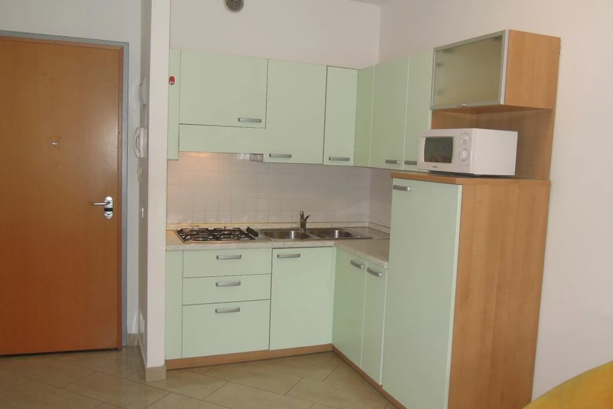 Die gut eingerichtete Küche verfügt über Herd, Geschirr, Besteck, Töpfe, eine Mikrowelle, eine italienische Espressokanne und einen Kühlschrank mit Eisfach. Wer nicht selbst kochen möchte, kann eines der vielen Restaurants in Fussnähe besuchen und sich von der guten italienischen Küche verwöhnen lassen.
