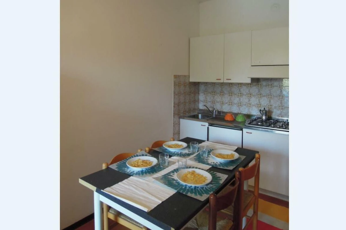 Die gut eingerichtete Küche verfügt über Herd, Backofen, Geschirr, Besteck, Töpfe, Mikrowelle und Kühlschrank mit Eisfach. Wer nicht selbst kochen möchte, kann eines der vielen Restaurants in Fussnähe besuchen und sich von der guten italienischen Küche verwöhnen lassen.