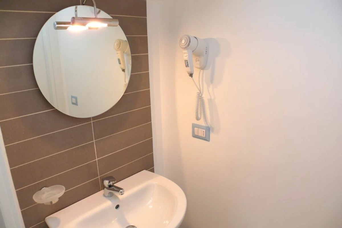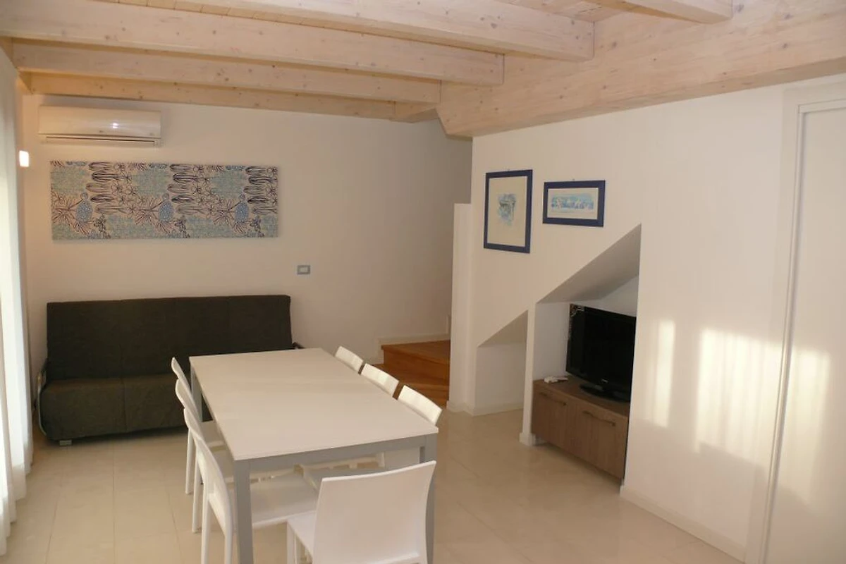 Das hübsche 3 Zimmer-Häuschen Tipo C bietet Platz für max. 7 Personen und ist auf 2 Stockwerke verteilt. Die Wohnung verfügt über ein Schlafzimmer mit einem Doppel- und einem Einzelbett und über ein weiteres Schlafzimmer mit zwei Einzelbetten. Im Wohnbereich bietet ein Doppelbettsofa bei Bedarf zwei weitere Schlafplätze. Eine gut eingerichtete Kochnische mit Herd, Geschirr, Besteck, Töpfen, Mikrowelle, Geschirrspülmaschine, Kaffeemaschine und Kühlschrank mit Eisfach befindet sich ebenfalls im Wohnbereich. Die beiden Badezimmer verfügen über je eine Dusche, ein Waschbecken, einen Haartrockner sowie ein WC. In einem Badzimmer ist zusätzlich ein Bidet vorhanden. Bettwäsche und Handtücher können auf Wunsch vor Ort gemietet werden (bitte beim Buchen reservieren). Die Wohnung verfügt über einen Balkon sowie einen kleinen Garten mit überdachtem Sitzplatz, welcher mit Tisch und Stühlen zum Verweilen einlädt. Bei Bedarf können ein Reisebett oder ein Hochstuhl dazu gemietet werden (bei Buchung bitte reservieren). Die Fahrzeit ab italienischer Grenze beträgt ca. 4h. Gemeinschafts-Grillstelle vorhanden (Rost bitte selber mitbringen). Hinweis: Wenn Sie mehr als eine Unterkunft benötigen, ist dies bei uns in der Regel möglich, da wir über mehrere Objekte des gleichen Haustyps verfügen.