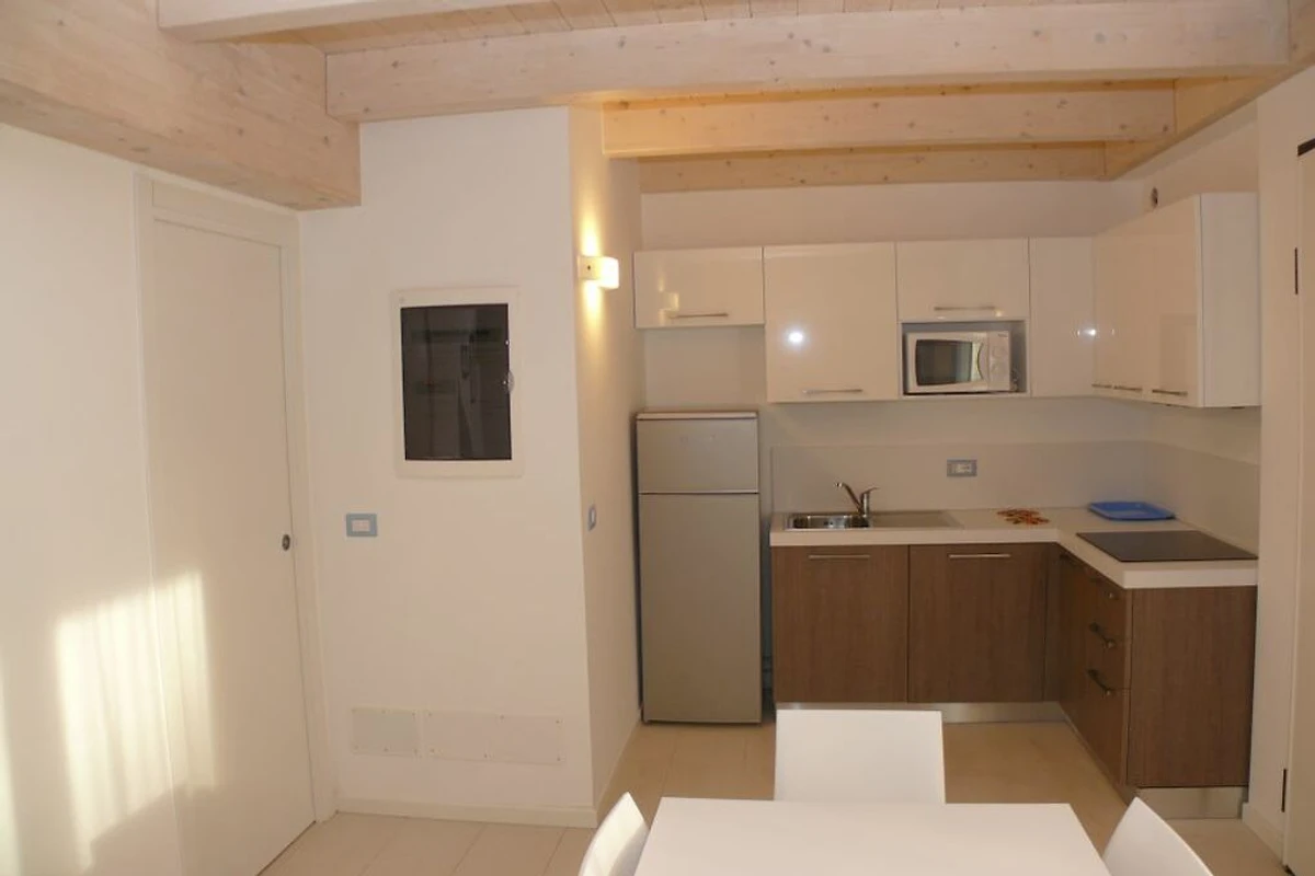 Die gut eingerichtete Küche verfügt über Herd, Geschirr, Besteck, Töpfe, Mikrowelle, Geschirrspülmaschine, Kaffeemaschine und Kühlschrank mit Eisfach. Wer nicht selbst kochen möchte, kann eines der vielen Restaurants in Fussnähe besuchen und sich von der guten italienischen Küche verwöhnen lassen.