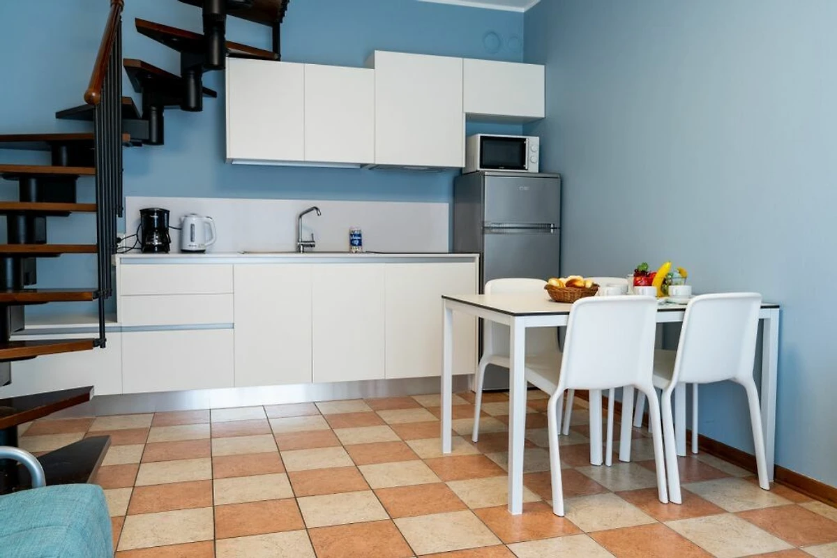 Die gut eingerichtete Küche verfügt über einen Gasherd, Geschirr, Besteck, Töpfe, Mikrowelle, Wasserkocher, Kaffeemaschine, Geschirrspüler und Kühlschrank mit Eisfach. Wer nicht selbst kochen möchte, kann eines der vielen Restaurants in Fussnähe besuchen und sich von der guten italienischen Küche verwöhnen lassen.