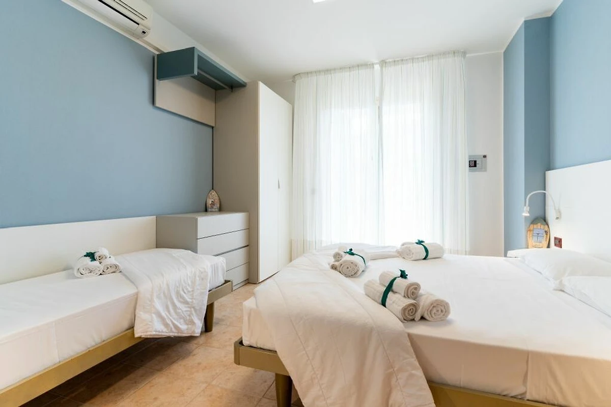 Die Residenz liegt nur wenige Gehminuten vom Strand entfernt. In Fussnähe finden Sie Restaurants, Gelaterias und Einkaufsmöglichkeiten. Auch das Stadtzentrum kann gut zu Fuss erreicht werden.