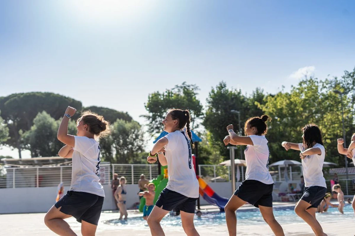 In der Zwischen- und Hochsaison wird eine Gruppe erfahrener Animateure Ihren Aufenthalt auf eine sanfte Art beleben. Jeden Tag finden abwechselnd Fussball, Tischtennis, Beach Volley, Wasserball, Tennis und Spielturniere statt. Das Team organisiert auch Aerobic, Wassergymnastik und weitere Kurse. Für jüngere Kinder gibt es einen Miniclub und für die älteren gibt es einen Juniorclub. Zudem gibt es mehrere Spielplätze sowie einen Spielpark mit Hüpfburgen. Ihre Kinder werden die Möglichkeit haben, als Protagonisten an abendlichen Vorstellungen teilzunehmen. Jeden Abend werden auch Kabarett, Spielabende und Gästeabende organisiert, danach Disco und/oder Tanzabende. Wer sich sportlich betätigen möchte, hat eine grosse Auswahl. Mehrzweckfelder (Basketball, Volleyball, Fussball), Tischtennisplätze sowie Tennisplätze stehen zur Verfügung.
