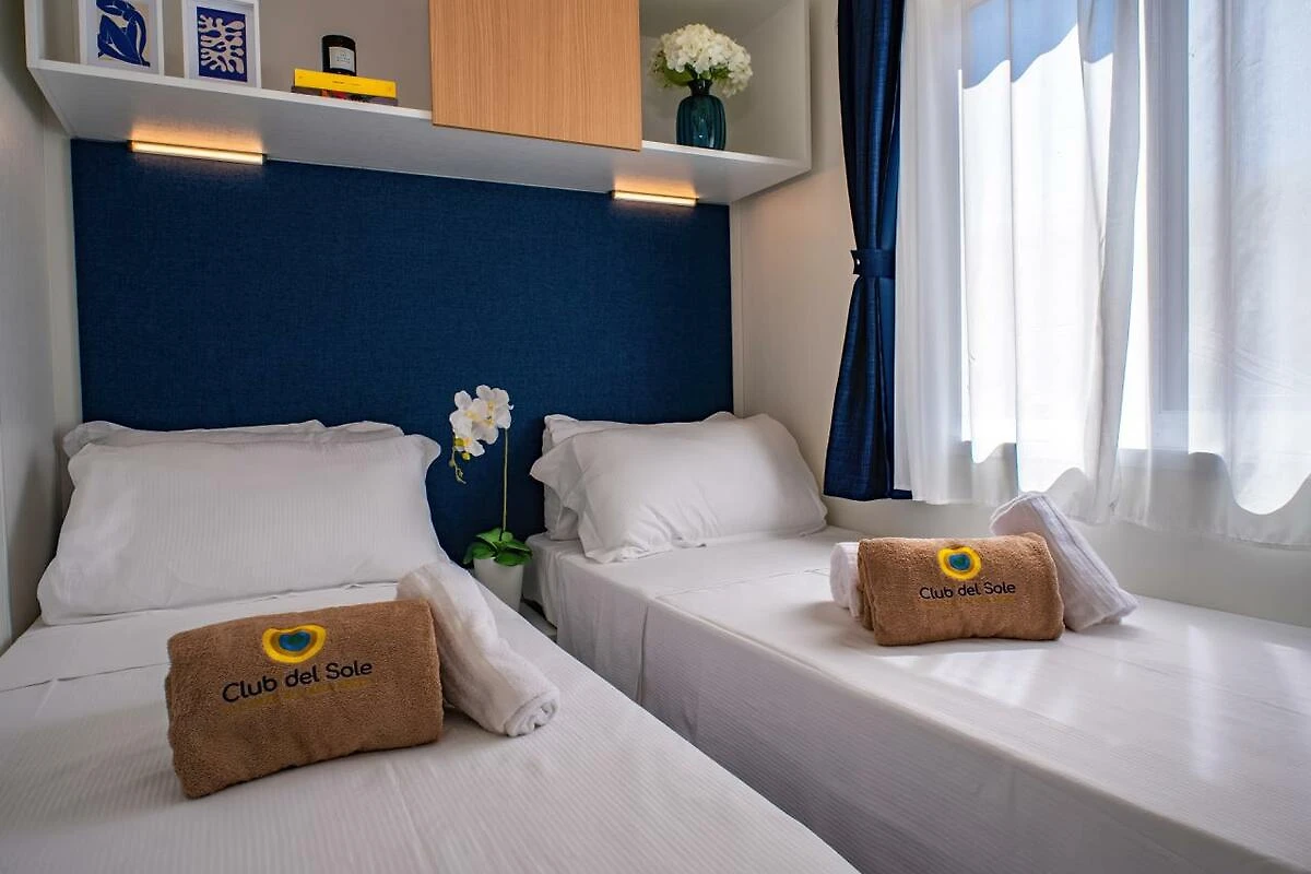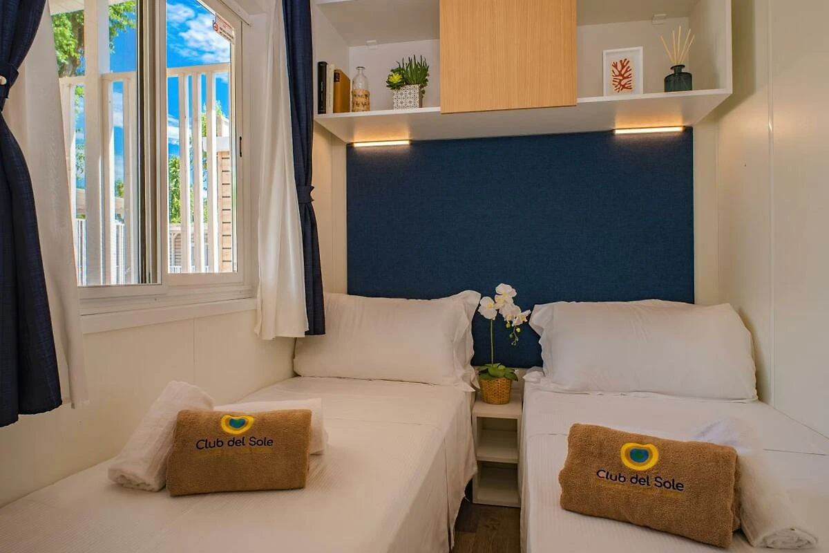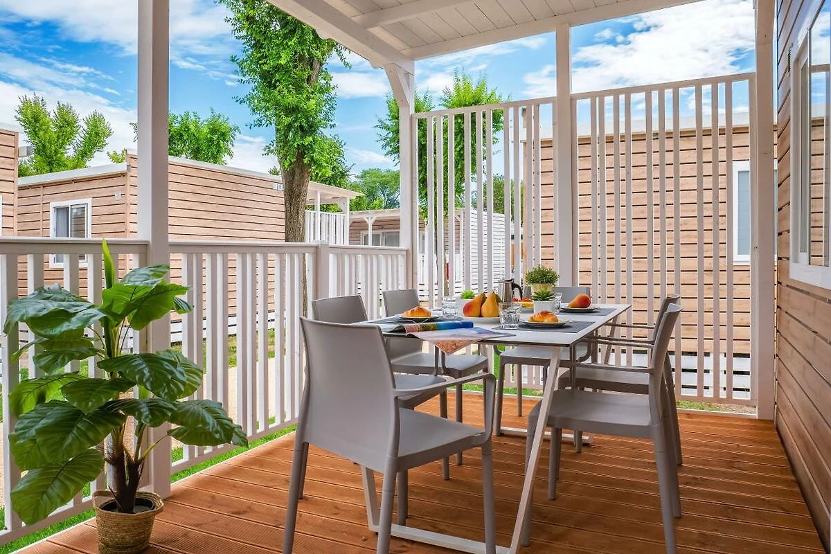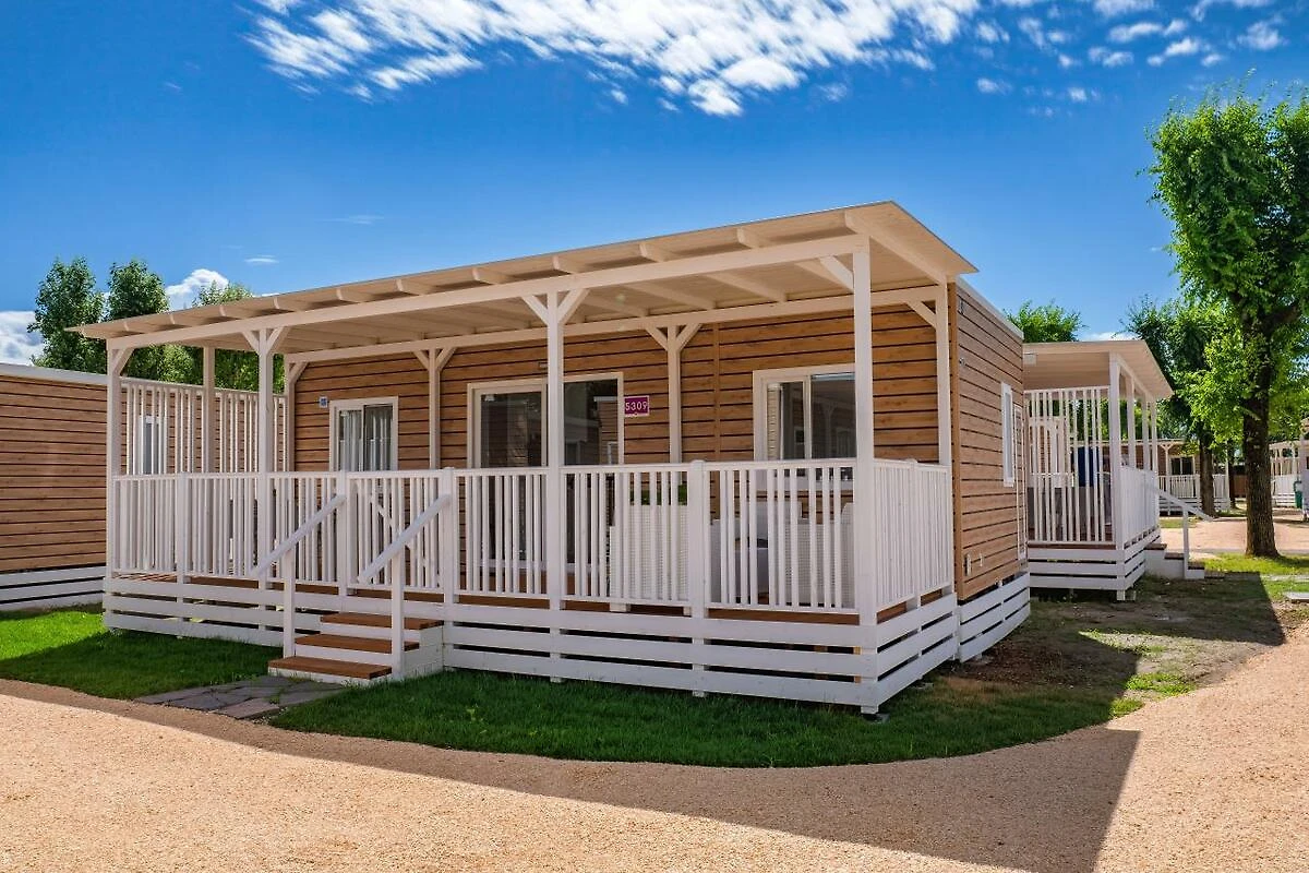 Die moderne und komfortabel eingerichtete Lodge Superior Family bietet Platz für max. 6 Personen und besteht aus einem Schlafzimmer mit Doppelbett, sowie zwei weiteren Schlafzimmern mit jeweils zwei Einzelbetten. Im Wohnbereich befindet sich ein Sofa und SAT-Fernseher. Ebenfalls im Wohnbereich befindet sich ein Tisch mit Stühlen. Die gut eingerichtete Küche befindet sich im Wohnbereich und verfügt über einen Herd, Geschirr, Besteck, Töpfe, eine italienische Mokka-Kaffeemaschine, Geschirrspüler, Mikrowelle, sowie einen Kühlschrank. Die Unterkunft verfügt über zwei Badezimmer, die jeweils mit einer Dusche, einem Waschbecken, einem WC ausgestattet sind. Ein Badezimmer verfügt darüber hinaus über ein Bidet. Die überdachte Holzterrasse ist möbliert und lädt zum Entspannen ein.Fahrzeit ab italienischer Grenze ca. 2h. Hinweis: Wenn Sie mehr als eine Unterkunft benötigen, ist dies bei uns in der Regel möglich, da wir über mehrere Objekte des gleichen Haustyps verfügen.