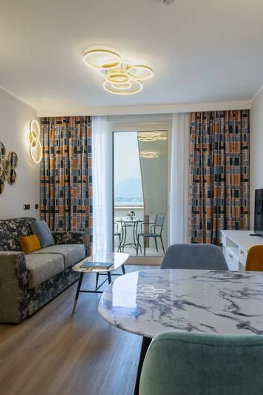 Das circa 55qm grosse und modernisierte Dreizimmerapartment besticht durch sein modernes Design und bietet Platz für maximal 5 Personen. Es verfügt über ein Schlafzimmer mit Doppelbett und ein Schlafzimmer mit zwei Einzelbetten. Im Wohnbereich befindet sich ein Sesselbett, das eine Schlafgelegenheit für eine weitere Person bietet. Ein SAT-Fernseher ist vorhanden. Die Küche verfügt über einen Elektroherd- und Ofen, Geschirr, Besteck, Kochtöpfe, Mikrowelle, einen Kühlschrank mit Eisfach und eine Kaffeemaschine. Das Badezimmer ist mit Dusche oder Badewanne, WC,Bidet,Waschbecken und einem Haartrockner ausgestattet. Die Wohnung verfügt über einen möblierten Balkon mit Ausblick auf den See. Fahrzeit ab italienischer Grenze ca. 2h. Hinweis: Wenn Sie mehr als eine Unterkunft benötigen, ist dies bei uns in der Regel möglich, da wir über mehrere Objekte des gleichen Haustyps verfügen.
