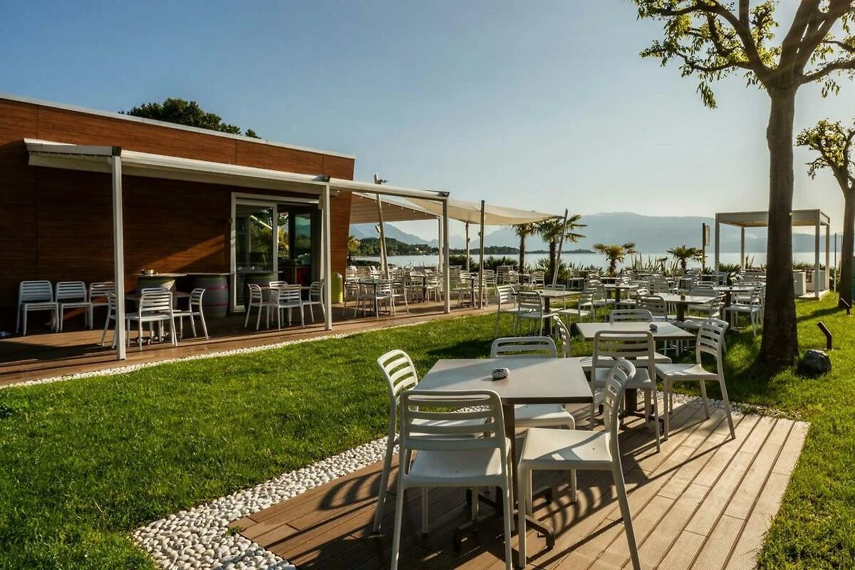 Direkt an die Ferienanlage grenzt ein freier Kieselstrand. Der Strand ist flach abfallend und somit auch gut für Familien mit Kindern geeignet. Ein schneller Imbiss kann in der Bar eingenommen werden, welche einen herrlichen Blick auf den wunderschönen Gardasee bietet.