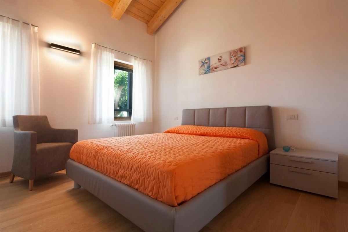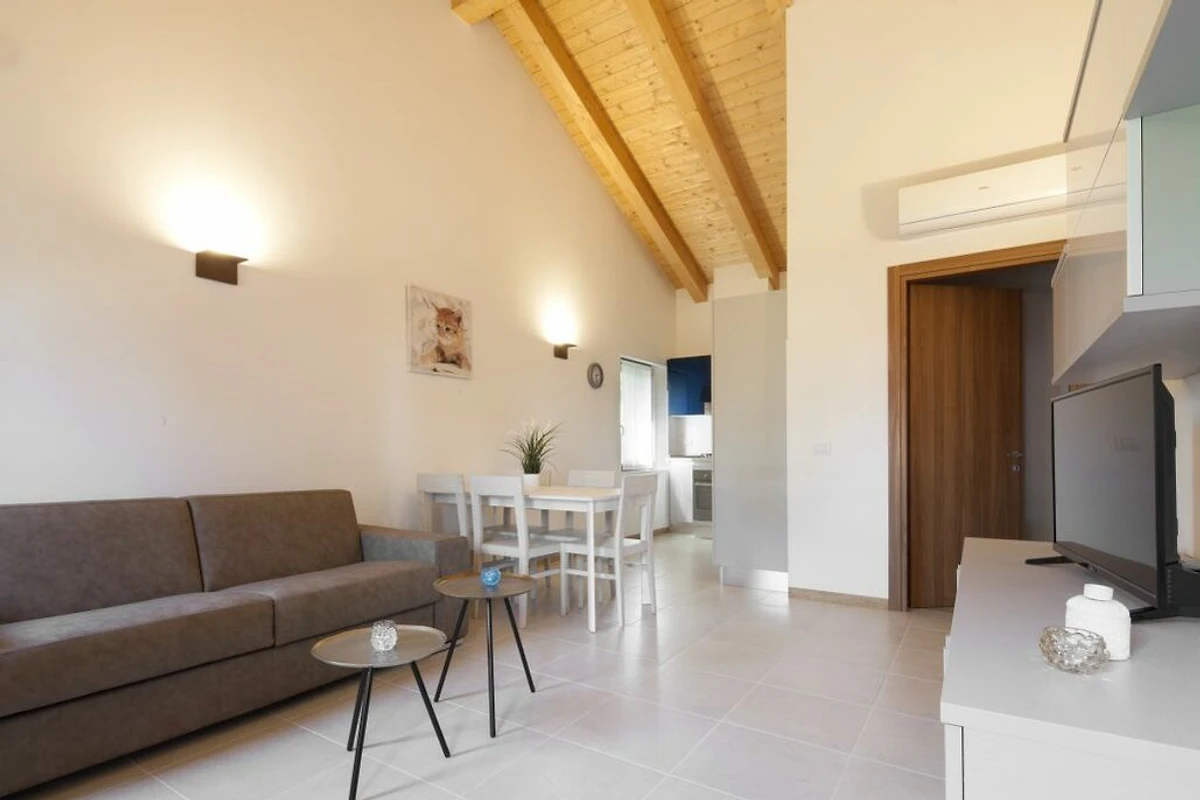 Die schönen Wohnungen der 2017 erbauten Landhäuser Ca’ del Pioppo befinden sich inmitten der Natur auf der Landzunge von Cavallino-Treporti. Die beiden Landhäuser der Anlage sind von einem wunderschönen, eingezäunten Garten mit Bäumen umgeben, den Sie gerne nutzen dürfen. Die Wohnungen sind geschmackvoll eingerichtet und perfekt geeignet für diejenigen, die besonders am Abend Ruhe suchen. Circa 1km entfernt liegt das Camping Village Cavallino, dessen Dienstleistungen den Gästen zur Verfügung stehen. Zu diesen zählt ein Wasserpark mit Wellnesszonen, Restaurants, eine Panorama-Lounge-Bar, in den Sommermonaten ein Animationsprogramm für Erwachsene und Kinder, sowie ein Wellness- und Spa-Center (gegen Gebühr).