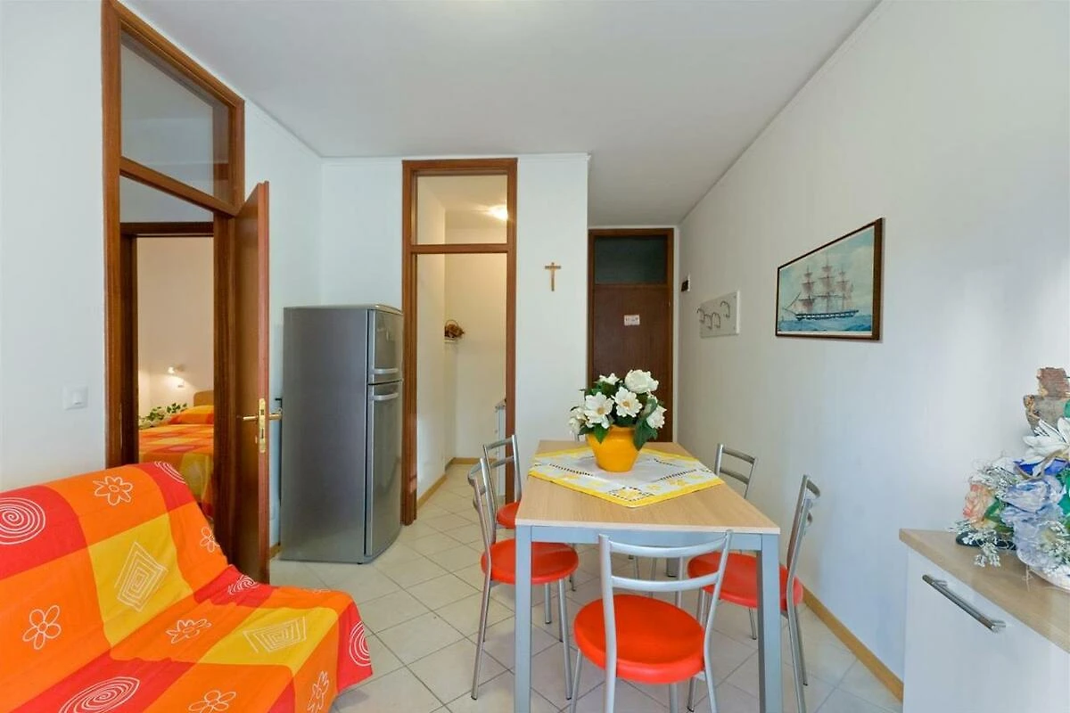 Die gepflegte Dreizimmer-Wohnung Trilo A3 befindet sich im ersten oder dritten Stockwerk (ohne Aufzug) und bietet Platz für max. 6 Personen (eine Überbelegung mit einem Baby im Reisebett ist auf Anfrage möglich). Die Unterkunft besteht aus einem Schlafzimmer mit Doppelbett und einem Schlafzimmer mit zwei Einzelbetten. Das Doppelschlafsofa im Wohnzimmer bietet Platz für zwei weitere Personen. Im Wohnbereich befindet sich ausserdem die gut eingerichtete Küche mit einem Herd, Geschirr, Besteck, Töpfen, Mikrowelle, Espressokanne und Kühlschrank mit Eisfach. Das Badezimmer ist mit einer Dusche, einem Waschbecken, einem Bidet sowie einem WC ausgestattet. Bettwäsche und Handtücher können auf Wunsch vor Ort gemietet werden (bitte beim Buchen reservieren). Die Wohnung verfügt zudem über einen grossen überdachten Balkon, welcher mit Tisch und Stühlen zum Verweilen einlädt. Bei Bedarf kann ein Reisebett oder ein Hochstuhl dazu gemietet werden (bei Buchung bitte reservieren). Optional steht Wifi zur Verfügung. Die Fahrzeit ab italienischer Grenze beträgt ca. 4h. Hinweis: Wenn Sie mehr als eine Unterkunft benötigen, ist dies bei uns in der Regel möglich, da wir über mehrere Objekte des gleichen Haustyps verfügen.