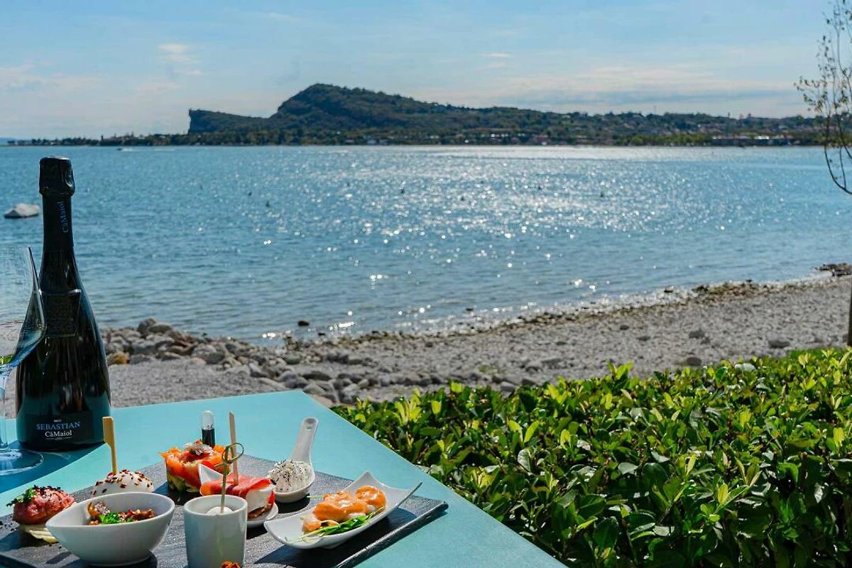 Direkt am Ufer des Gardasees in San Felice del Benaco, mit herrlichem Blick auf die Berge von Manerba und die Insel Garda gelegen, erwartet Sie diese wunderschöne, kleine Anlage mit allen Annehmlichkeiten, die Sie für einen gelungenen Urlaub benötigen. Ruhe, Natur und Unterhaltung werden hier in vollkommenem Gleichgewicht gehalten. Die Ferienanlage bietet Ihnen folgende Einrichtungen: stilvoll eingerichtete Unterkünfte umgeben von grüner Natur, eine moderne Sonnenterrasse mit Sonnenliegen- und Schirmen, sowie zwei Pools mit Massagedrüsen (garantiert von Ende Mai bis Ende September ungefähr) und direkten Blick auf den See, ein Beach Cafè und einen Fitnessbereich, ebenfalls mit direktem Seeblick. Für die kleinen Gäste gibt es einen kleinen Kinderspielbereich. Eine eigene App der Anlage ermöglicht Ihnen mit einem Klick einen Lieferservice für Restaurant, Pizzeria und Supermarkt. Der Gardasee eignet sich ausserdem hervorragend für zahlreiche Wassersportarten. Golfbegeisterte finden in der Umgebung tolle Golfplätze.
