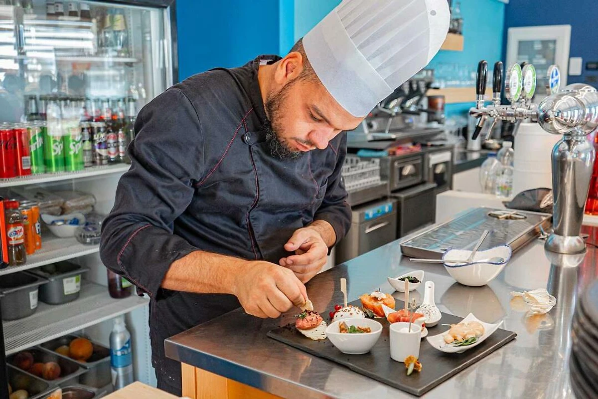 Die Wohnung verfügt über eine gut eingerichtete Küche mit Herd, Geschirr, Besteck, Töpfen, Pfannen und einem Kühlschrank mit Gefrierfach. Frühstück kann vor Ort hinzugebucht werden. Auch Einkaufsmöglichkeiten liegen in nächster Nähe. Selbstverständlich haben Sie auch die Möglichkeit sich in dem der modernen Bar der Anlage mit Blick auf den See mit Cocktails, Aperitifs oder einem schmackhaften Snack verwöhnen zu lassen.