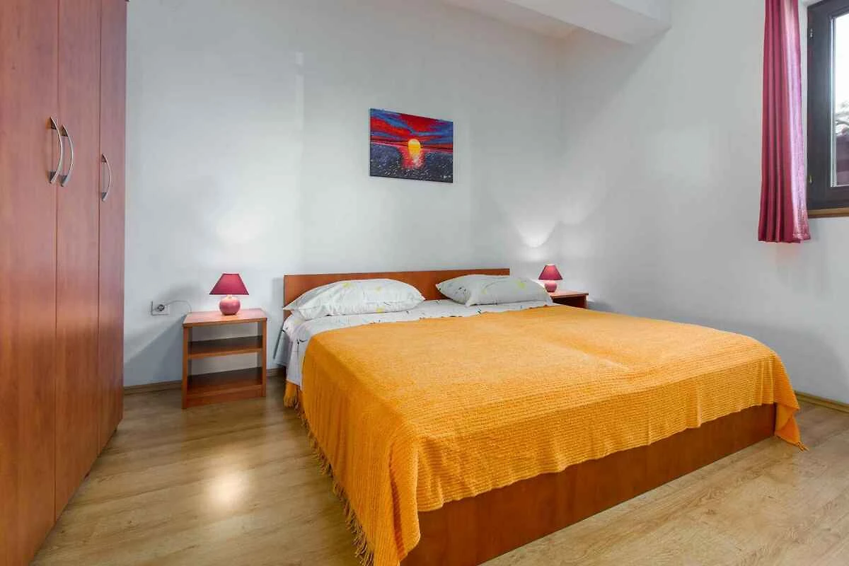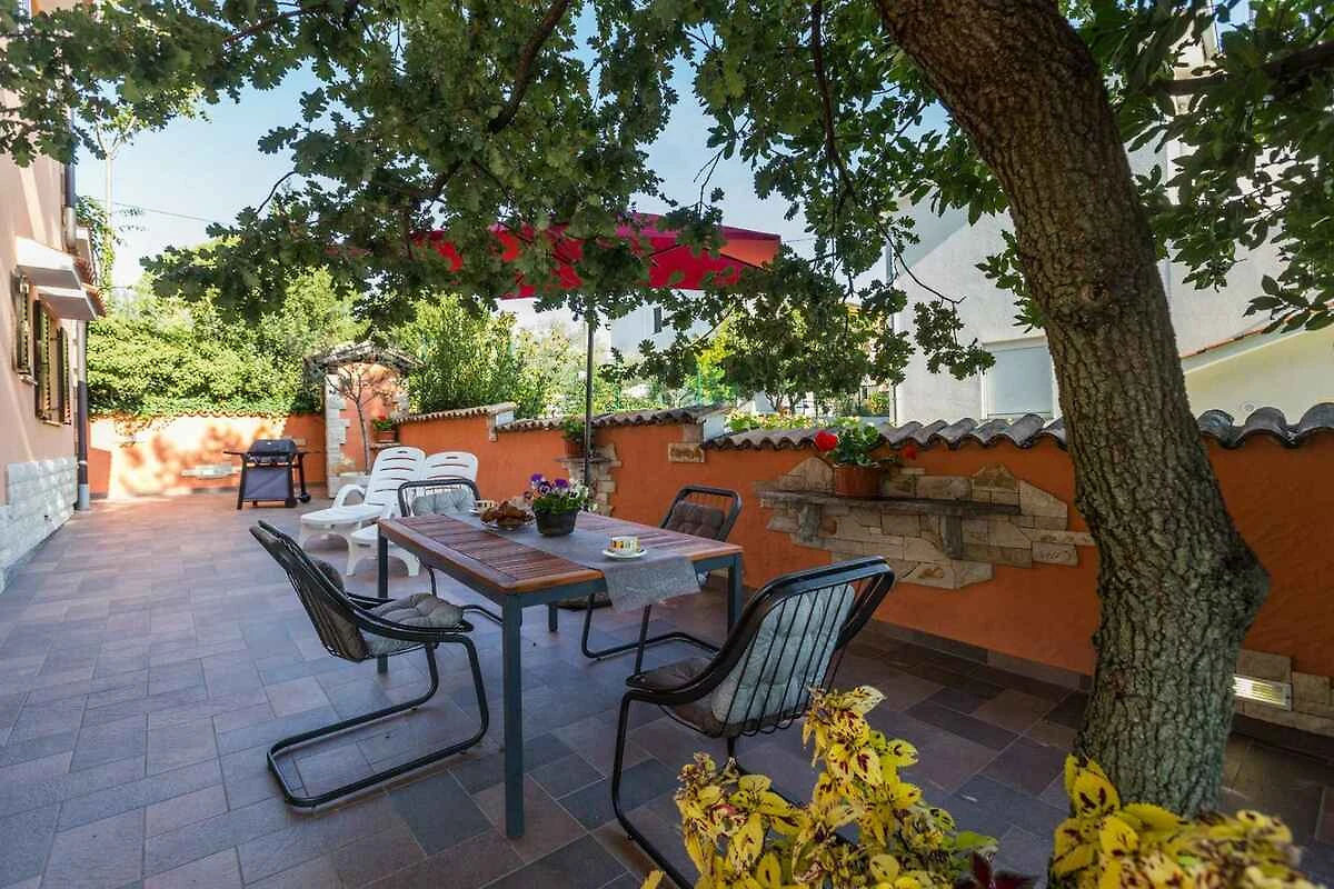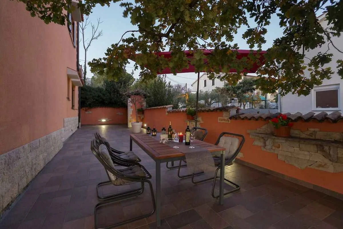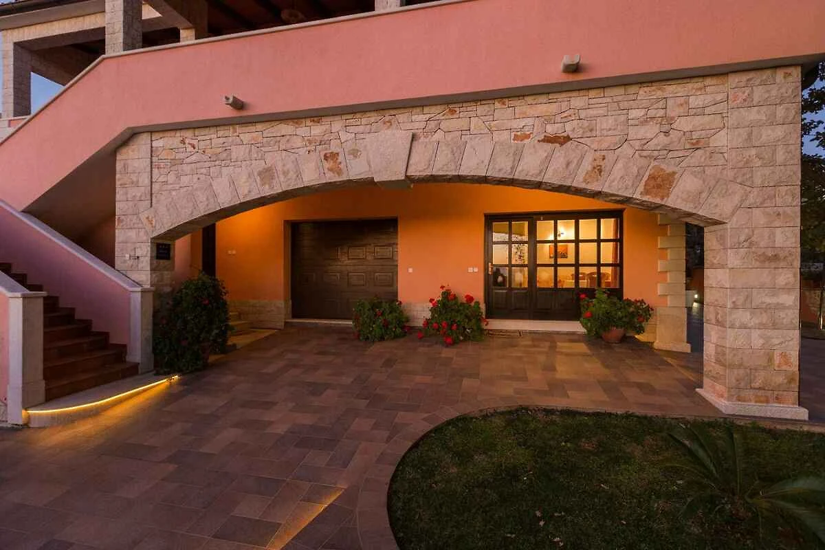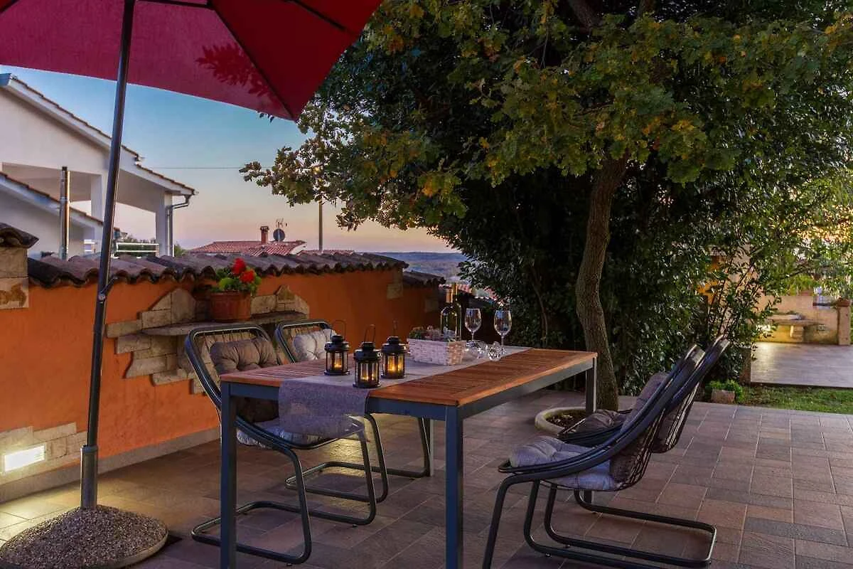 Kaštelir. Die Ferienwohnung befindet sich auf einem geschlossenen Gartengrundstück mit Wiese, Blumen, Sträuchern und Bäumen. Der Vermieter wohnt im Haus, nutzt jedoch einen separaten Eingang. Die Zufahrt erfolgt über eine Nebenstrasse (asphaltiert). Parkplatz in Carport und auf dem Grundstück.