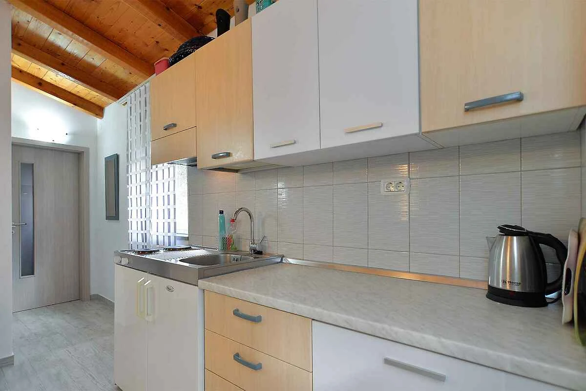 Pomer. Die Ferienwohnung befindet sich auf einem geschlossenen Gartengrundstück, von einem Zaun begrenzt. Der Vermieter wohnt im Haus, nutzt jedoch einen separaten Eingang. Strandnähe. Die Zufahrt erfolgt über eine Nebenstrasse (asphaltiert). Parkplatz (für 1 Pkw).