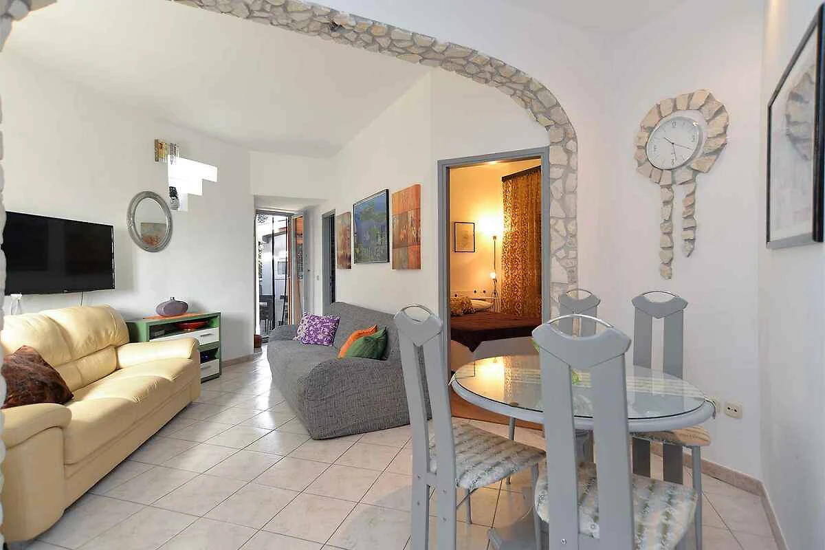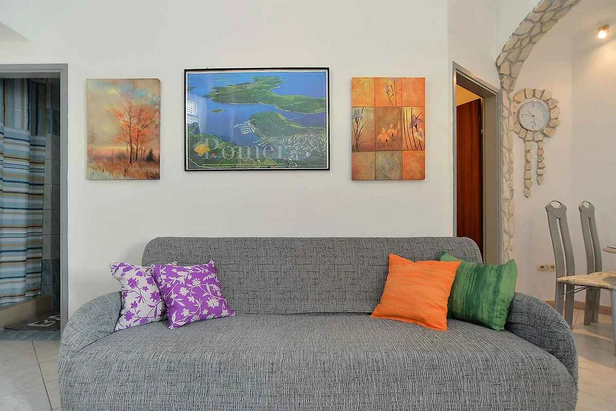 Pomer. Die Ferienwohnung befindet sich auf einem geschlossenen Gartengrundstück, von einem Zaun begrenzt. Der Vermieter wohnt im Haus. Die Zufahrt erfolgt über eine Nebenstrasse (asphaltiert). Parkplatz (für 1 Pkw).