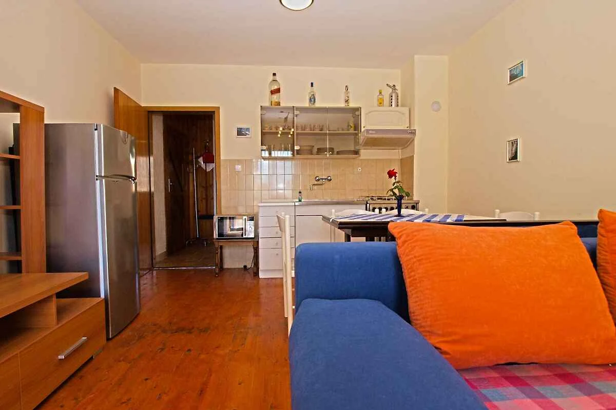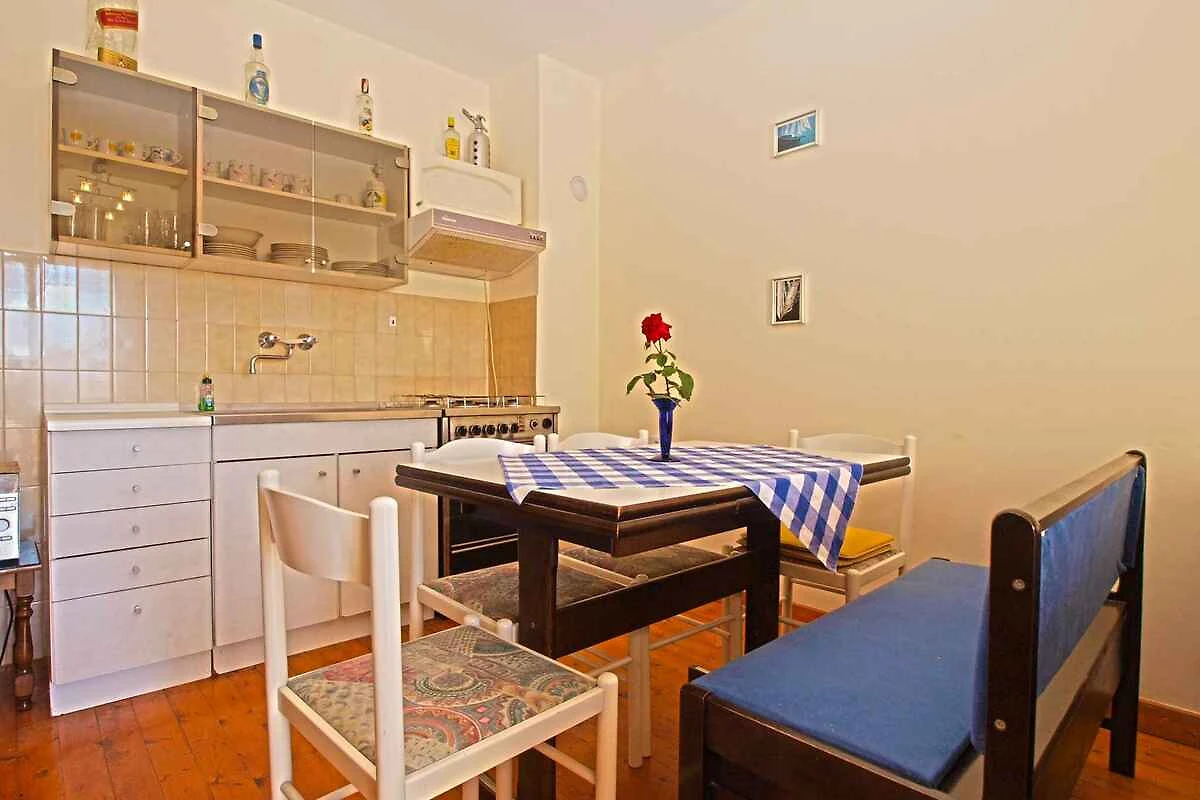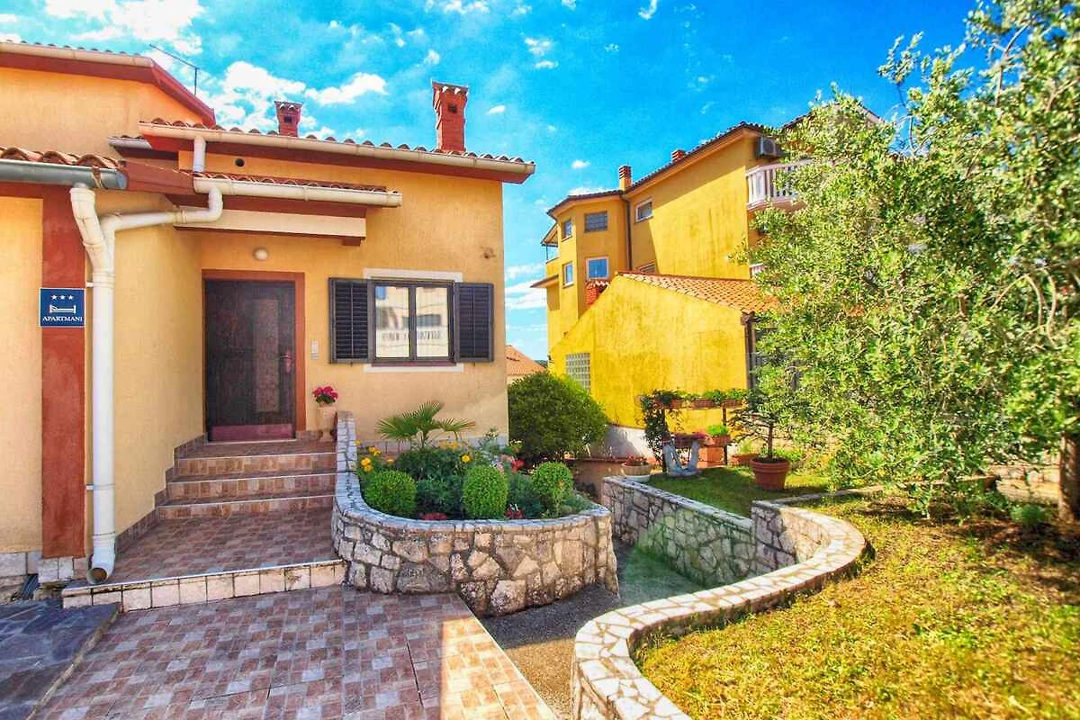 Pješćana Uvala. Die Ferienwohnung befindet sich auf einem Gartengrundstück mit Wiese, Blumen, Sträuchern und Bäumen. Der Vermieter wohnt im Haus. Strandnähe. Die Zufahrt erfolgt über eine Nebenstrasse (asphaltiert). Parkplatz auf dem Grundstück.