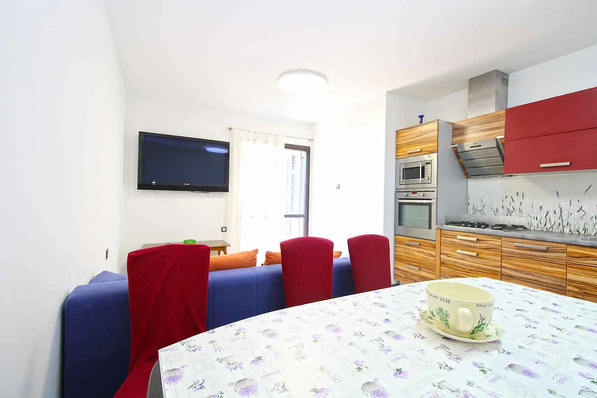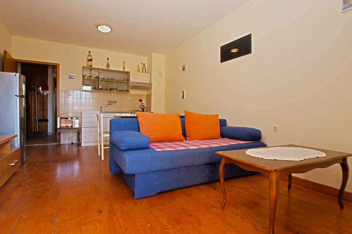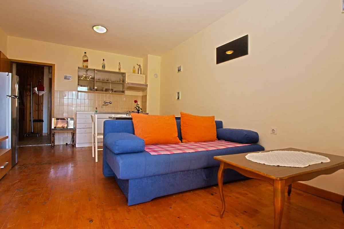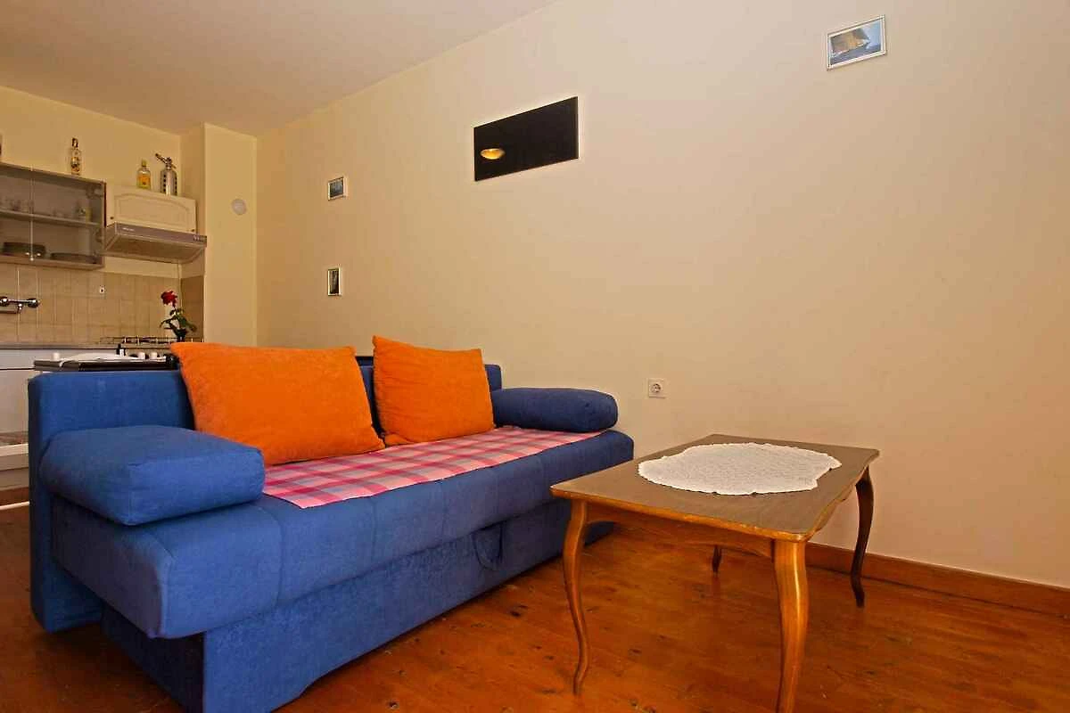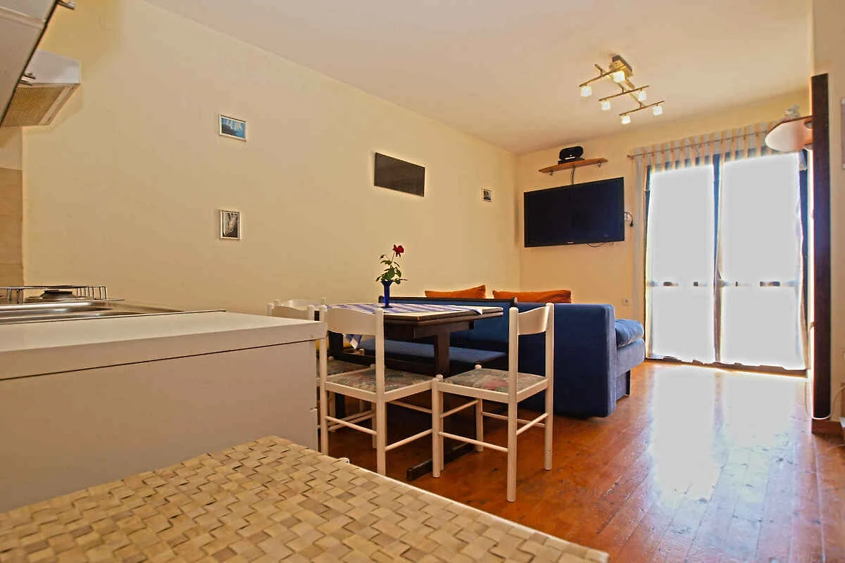 Einkauf 500 m, Restaurant 100 m, Ortszentrum 1500 m. Im Sommer: Adria 100 m in Pješčana Uvala (Strand 100 m in Pješčana Uvala mit Kies, Felsen und Badeplateaus).