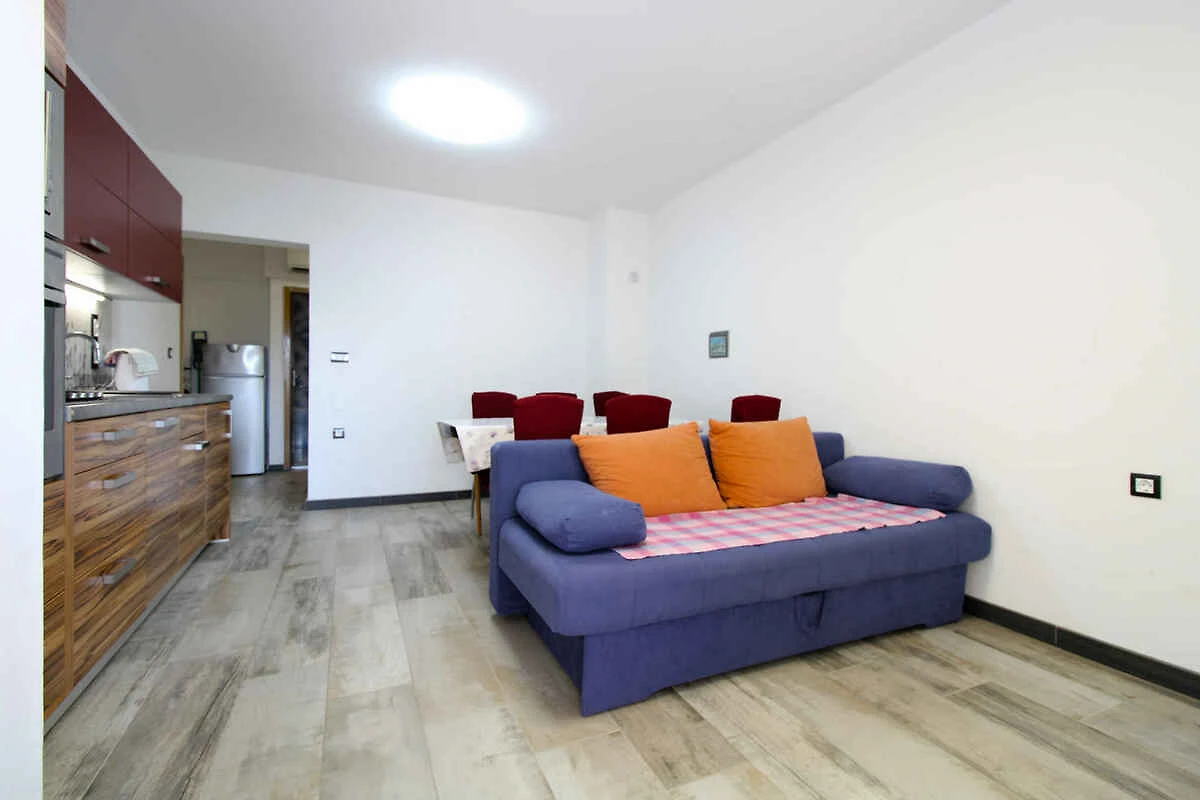 Die Ferienwohnung befindet sich in einem Apartementhaus und ist zweckmässig eingerichtet. Das Grundstück liegt in einem Wohngebiet, am Ortsrand. Auch wegen der sonnigen Lage ist das Domizil beliebt. Zur gemeinsamen Nutzung stehen zur Verfügung: Grillmöglichkeit und Hof.