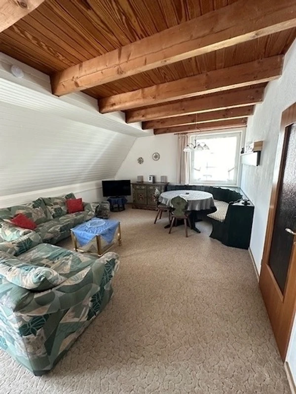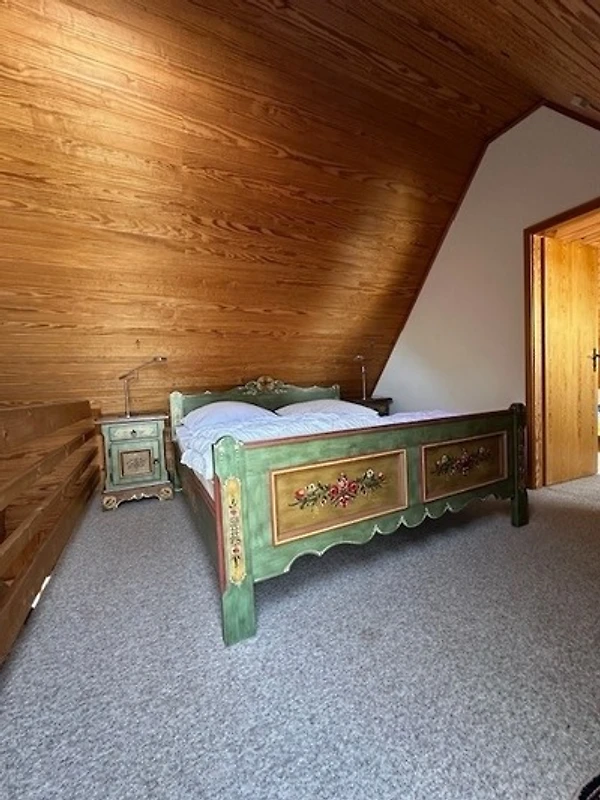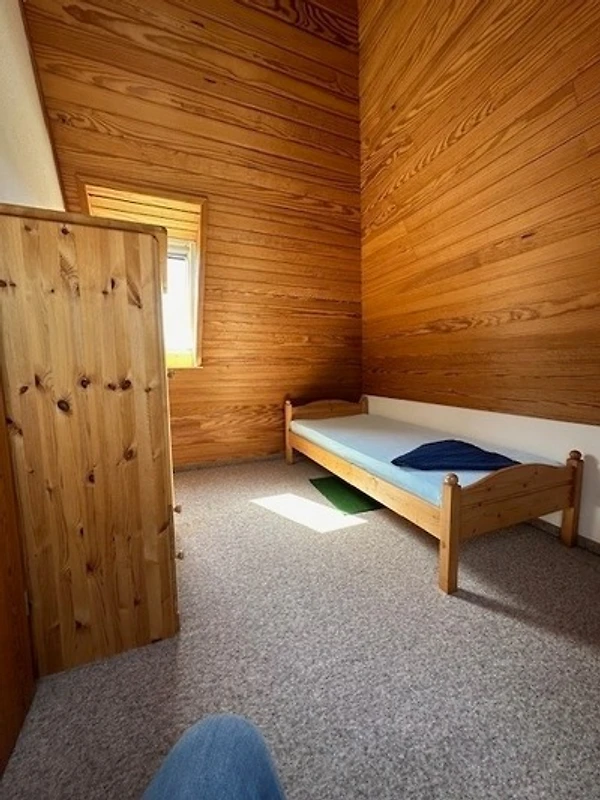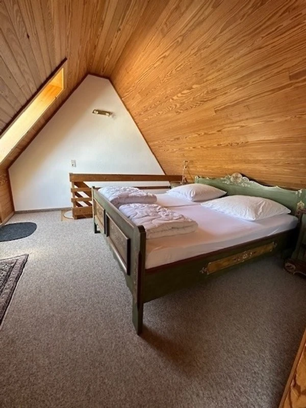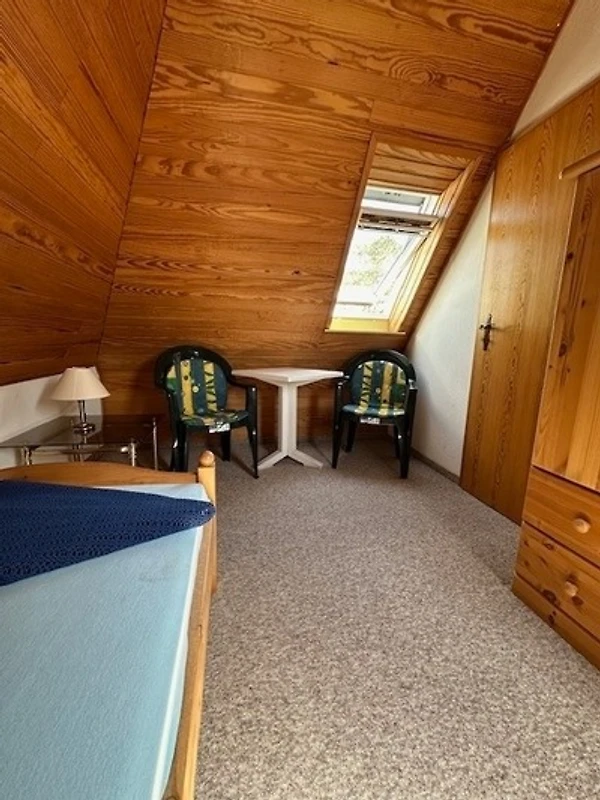 Die Wohnung 2 geht über zwei Ebenen. Wohnzimmer, Küche und Bad befinden sich in der ersten Etage. Das Schlafzimmer befindet sich in der zweiten Etage und ist über eine Innentreppe vom Wohnraum aus, erreichbar. Das Schlafzimmer ist mit einem Doppelbett (zwei Matratzen 90 X 200cm) ausgestattet. Von dort erreichen Sie einen zweiten Schlafraum, der mit einem Einzelbett versehen ist. Dieses Zimmer ist für Kleinkinder ungeeignet, da die Treppe in Richtung Wohnzimmer, über keine Kindersicherung verfügt. Vom Schlafzimmer aus, haben Sie Zugang zu Ihrem Balkon mit Seeblick. Die Wohnfläche beträgt zirka 40 qm.