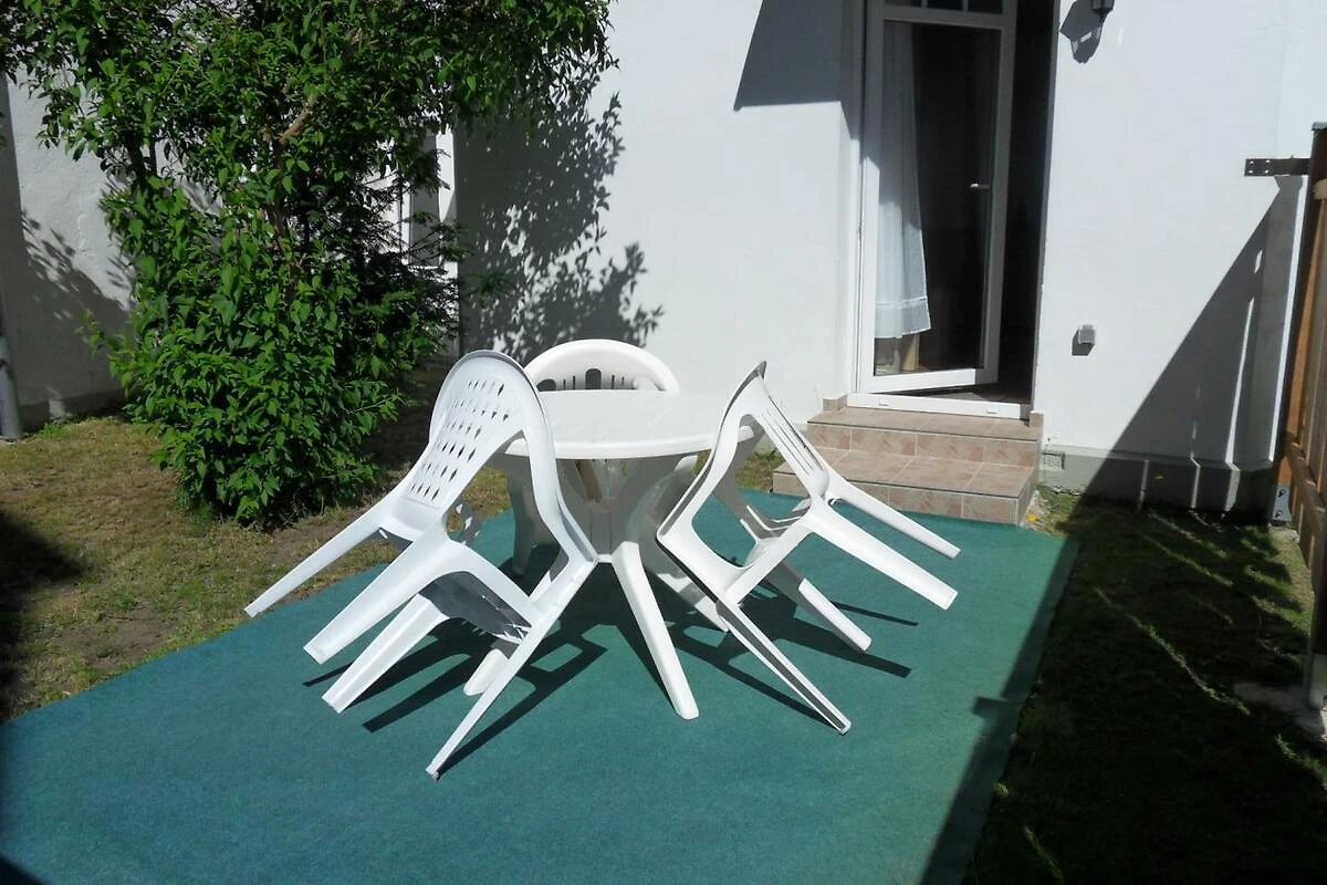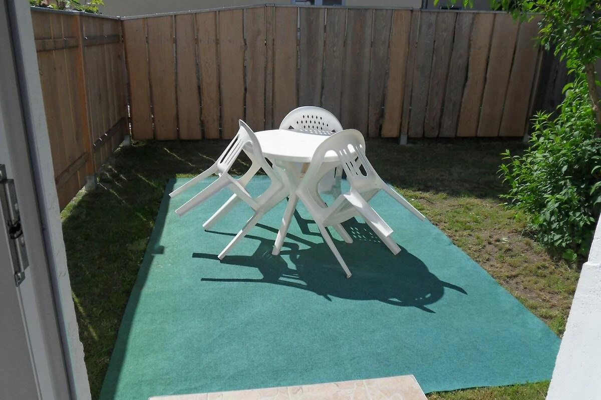 Ein eigener kleiner Gartenbereich mit Gartenmöbel, Sonnenschirm und Grill warten auf Sie.