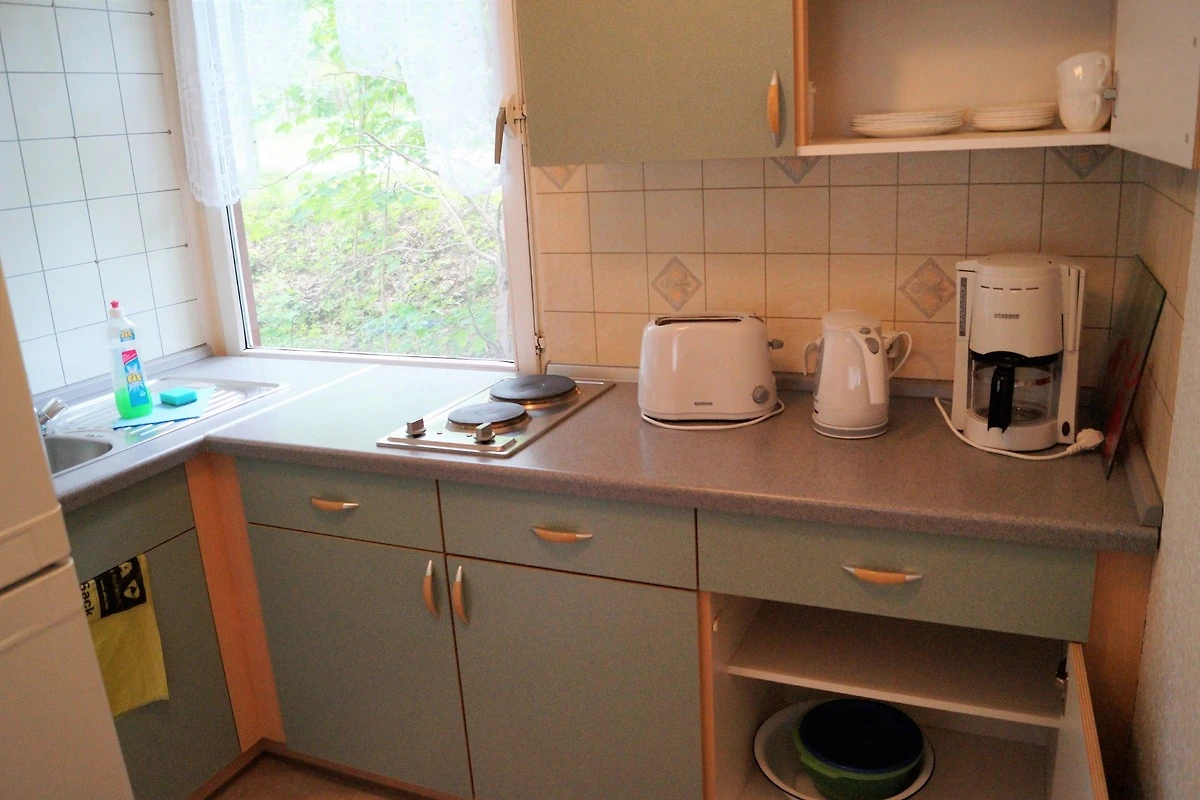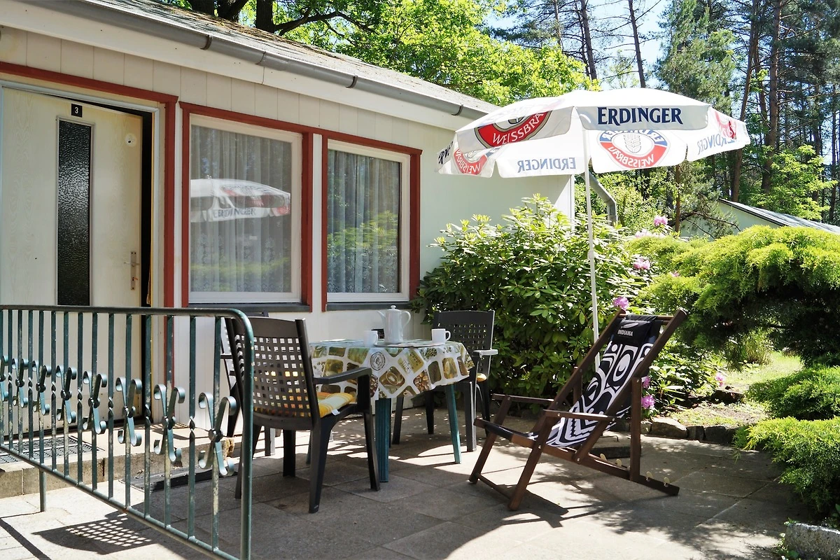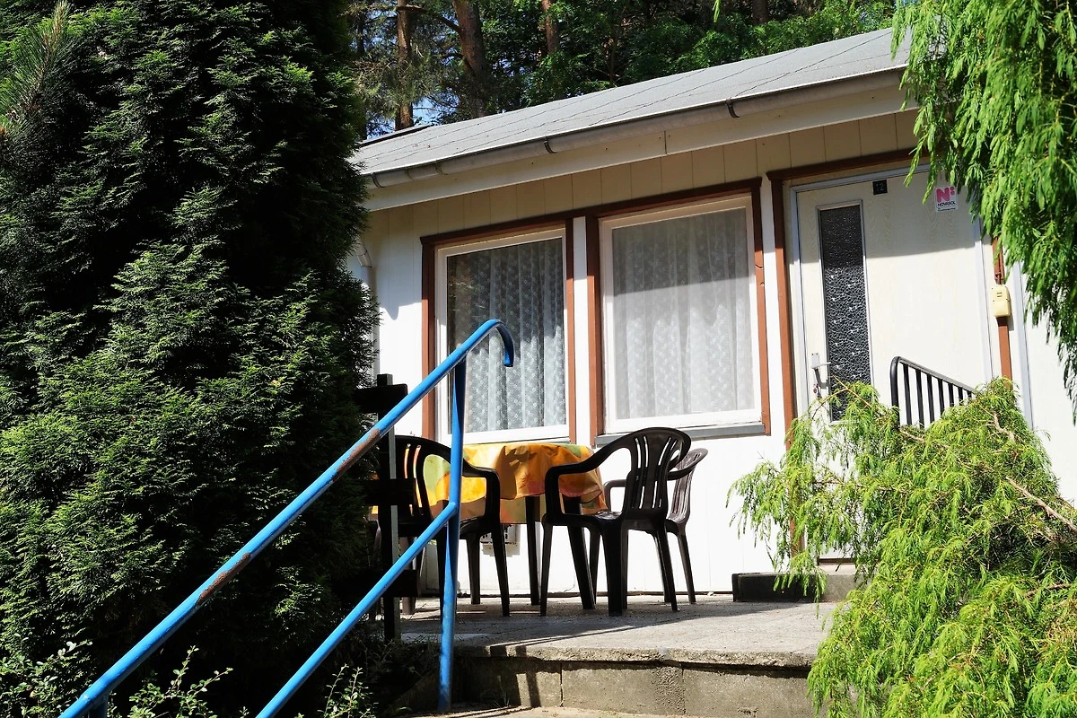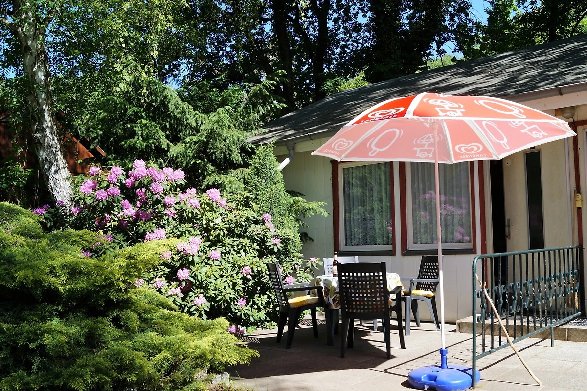 Doppelhaus Typ 1 ist eine Doppelhaushälfte für bis zu 5 Pers. (4 Erw. + 1 Kind). Die Nutzfläche beträgt ca. 45m² incl. einer mit Gartenmöbeln ausgestatteten Terrasse, einem trennbaren Wohnschlafraum mit Doppelbett, einem Schlafraum mit 2 Betten, davon ein Etagenbett, einer komplett eingerichteten Küche mit Elektrokochplatten, Kühlschrank, Spüle, Kaffeemaschine etc. sowie einem Bad mit Dusche & WC.