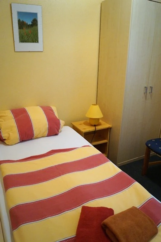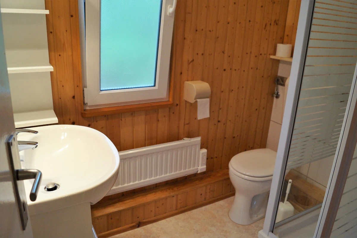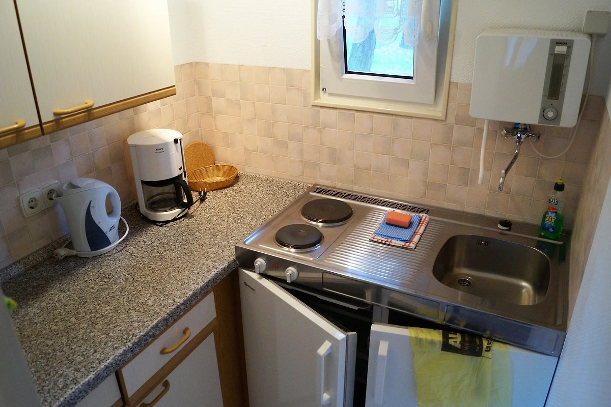 Bungalow Typ 3 ist ein komplett renoviertes alleinstehendes Ferienhaus für bis zu 3 Personen (3 Erw.). Die Nutzfläche beträgt ca. 38m² incl. eine mit Gartenmöbeln ausgestattete Terrasse, eine komplett eingerichtete Kleinküche mit Elektrokochplatten, Kühlschrank, Spüle, Kaffeemaschine etc., zwei Schlafräumen, einer mit zwei Einzelbetten und einer mit einem Einzelbett, sowie ein Bad mit Dusche & WC.