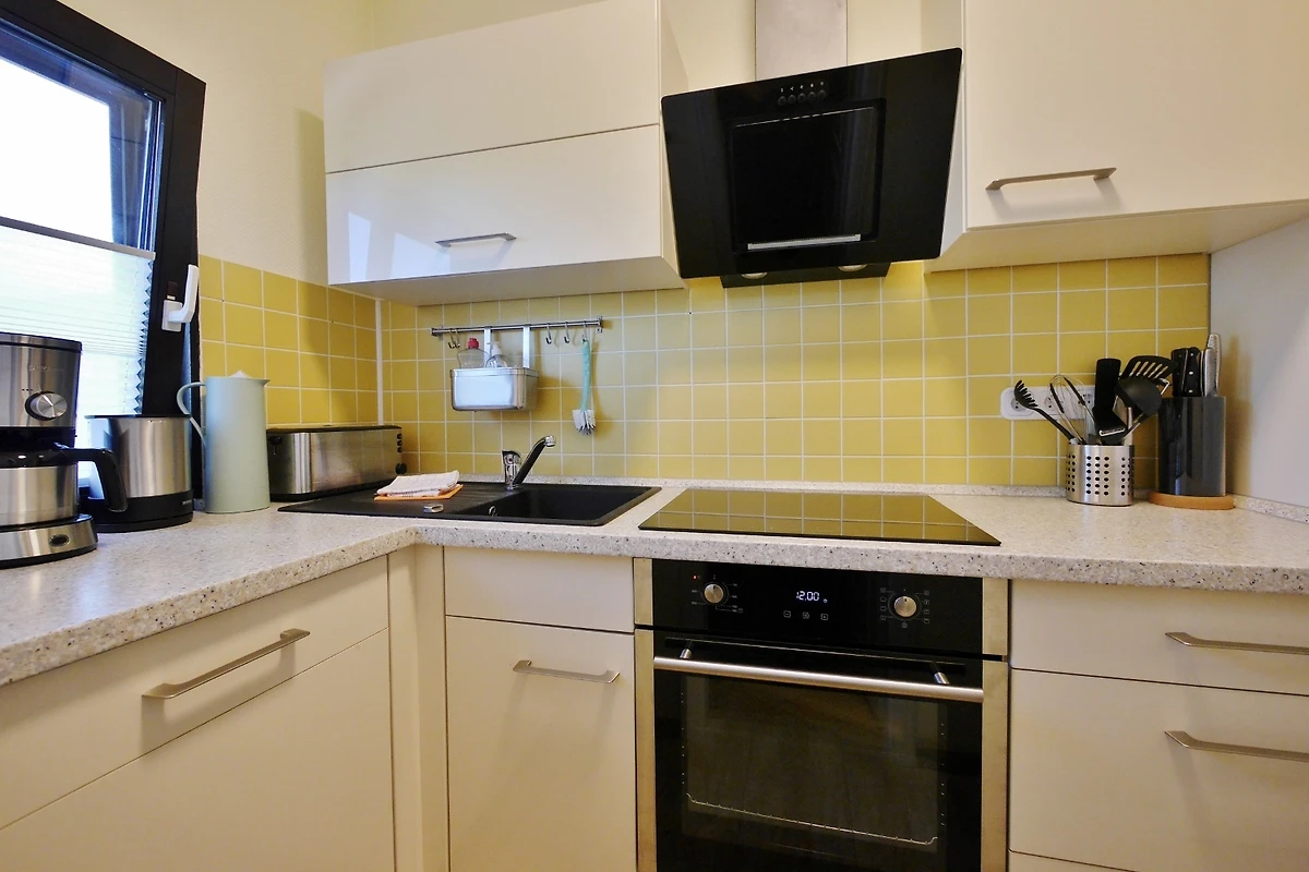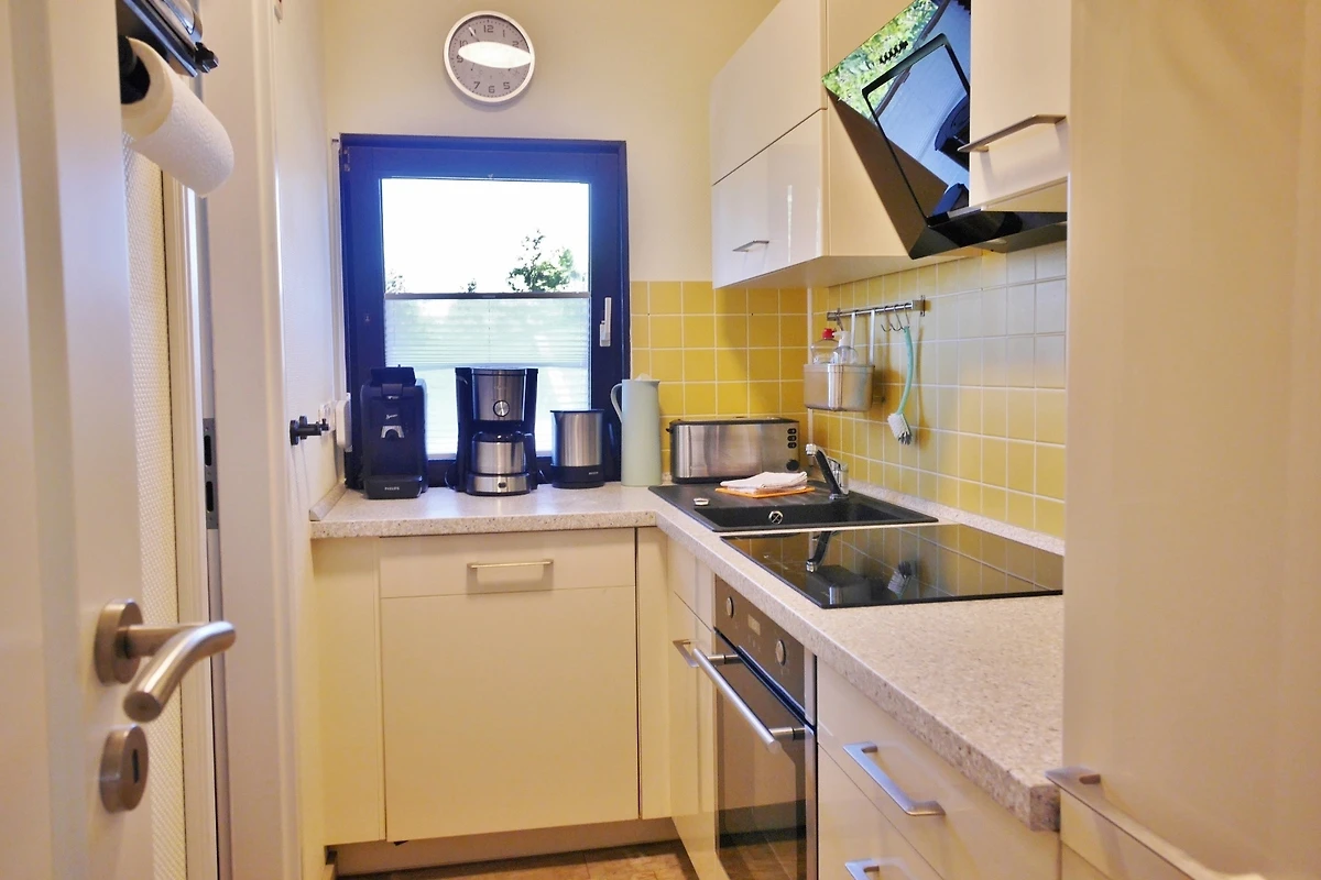 Kaffeemaschine, PAD-Maschine, Toaster, Wasserkocher, Eierkocher, Mixer, Waffeleisen sowie gutes Gewürzsortiment.