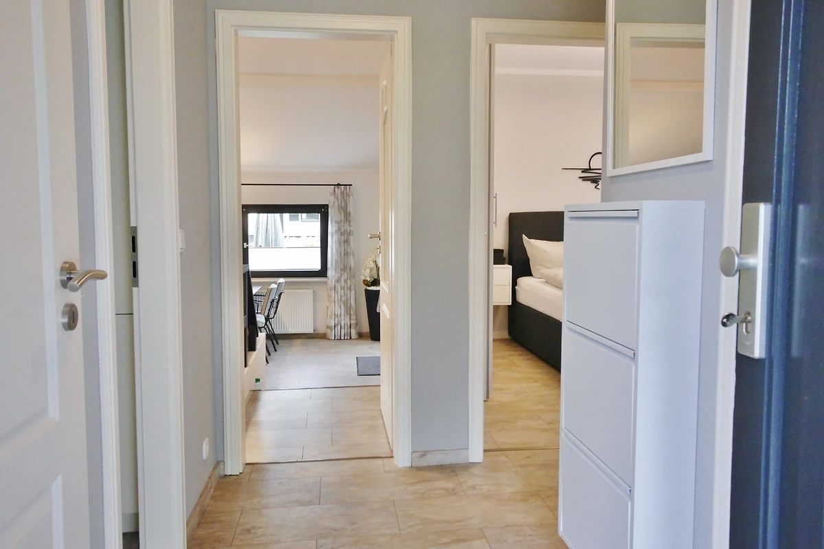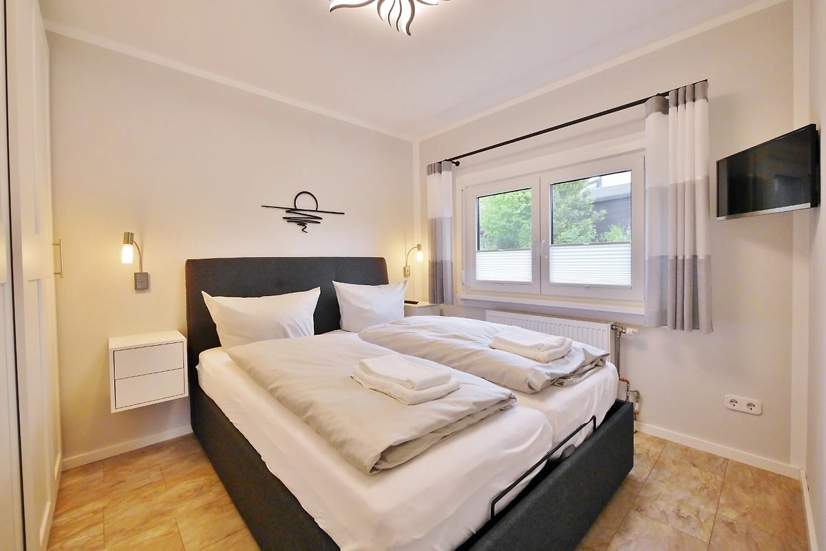- Schlafzimmer 1 mit Doppelbett (160x200) TV und Kleiderschrank