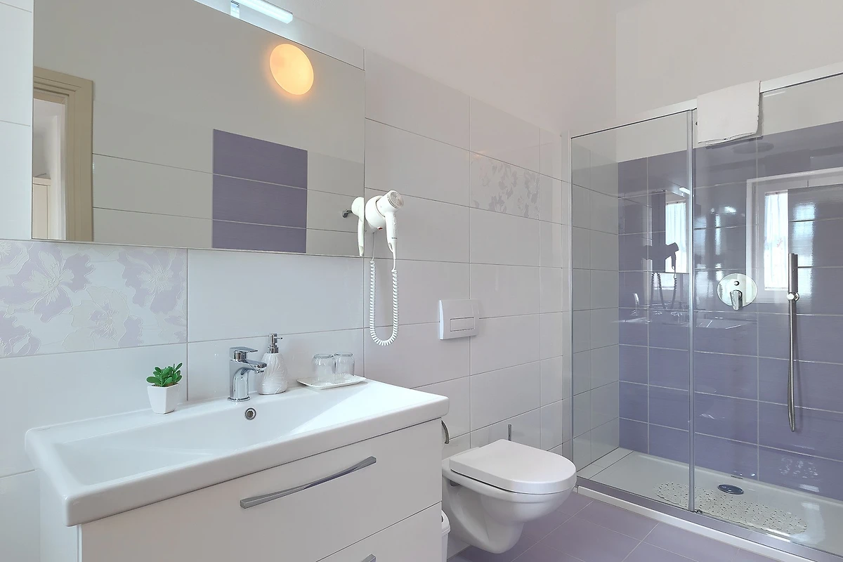 Die Schlafzimmer werden Ihre Oase der Ruhe sein, mit einer entspannenden Kombination aus sanften Pastellfarben und Weiss. Eines der Schlafzimmer, mit einem Doppelbett und Zugang zum Pool, befindet sich im Erdgeschoss. Die anderen 2 Schlafzimmer befinden sich im Obergeschoss - eines mit eigenem Balkon und einem Doppelbett und das andere mit 2 Einzelbetten. Alle Zimmer sind klimatisiert, haben ein eigenes Bad und sind mit einem Schreibtisch und einem Fernseher ausgestattet. Die Farbgebung der Zimmer ist auf die Dekoration der modernen Badezimmer abgestimmt. Haartrockner stehen den Gästen zur Verfügung und jedes Zimmer verfügt über eine geräumige Duschkabine.