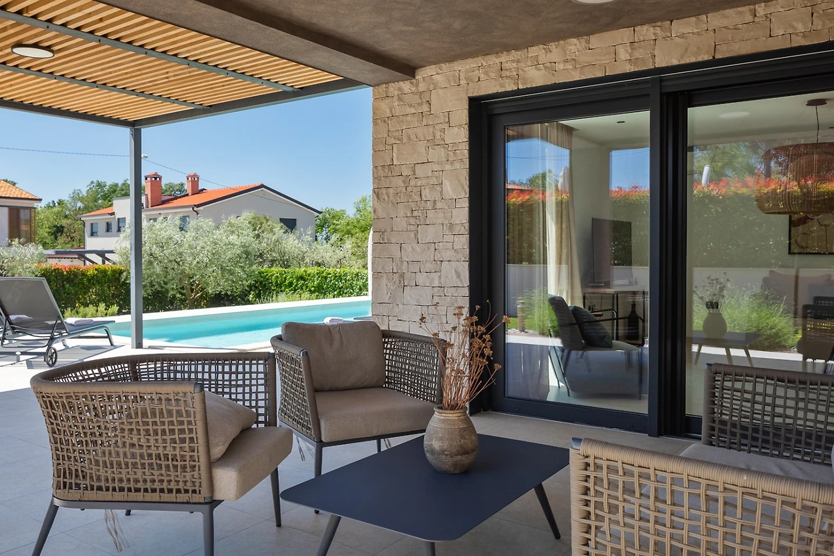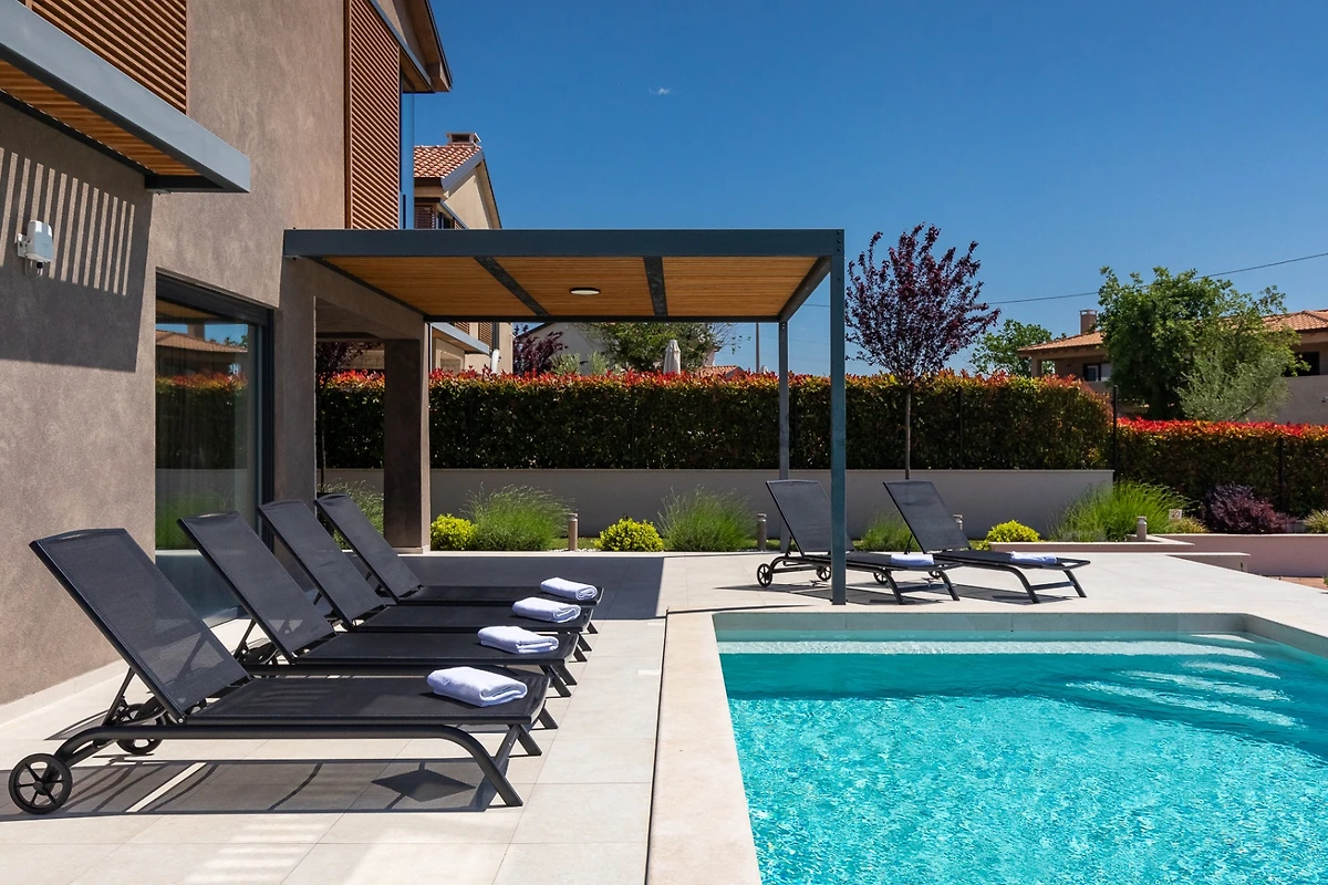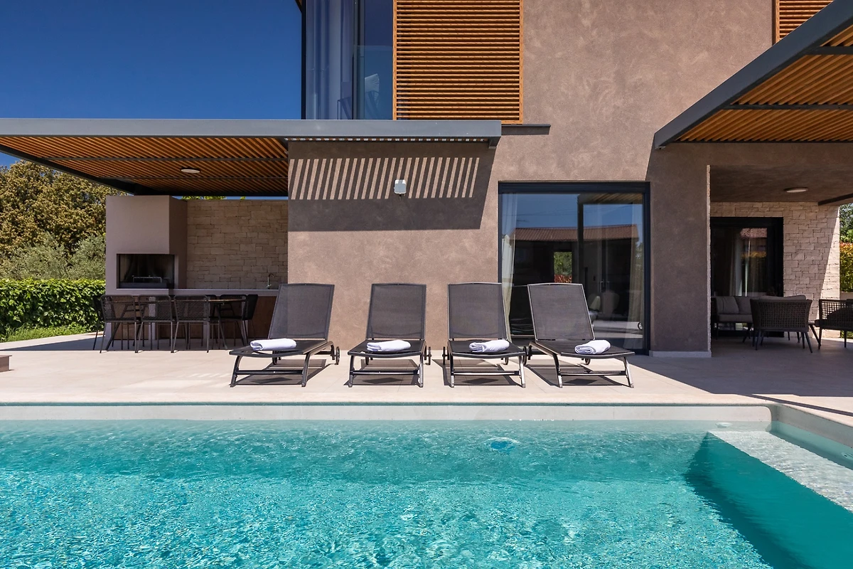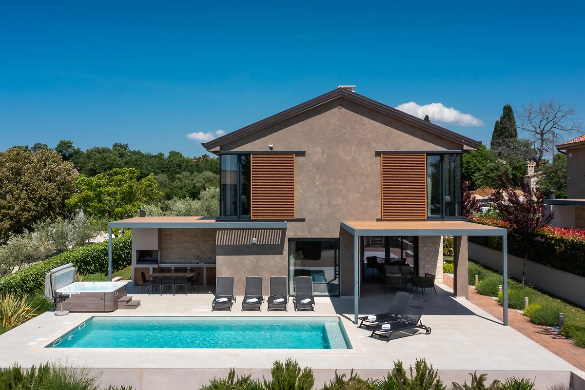 Die Villa Albona befindet sich am Rande des ruhigen Dorfes Kadumi, nicht weit von Poreč entfernt. Diese moderne Villa verfügt über 3 Schlafzimmer und 3 Bäder und ist für 6 Personen geeignet. Es hat ein modernes Äusseres in Erdtönen und kontrastierenden Materialien wie Stein und Stahl. Diese Villa wird ein idealer Zufluchtsort für diejenigen sein, die sich in einer ruhigen Umgebung entspannen und dennoch in der Nähe von Veranstaltungen und grösseren Städten sein wollen.