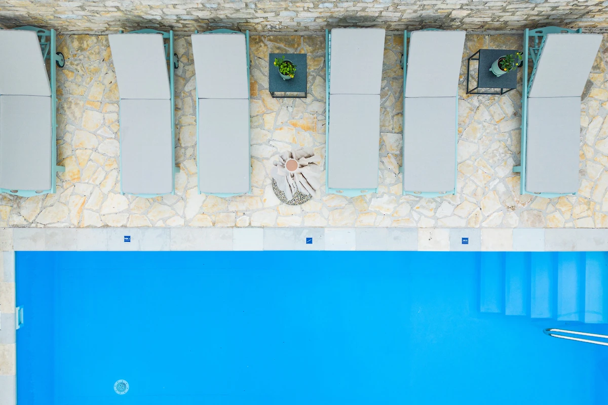 Das Grundstück ist 627 m² gross, von einer Steinmauer umgeben und mit üppigen mediterranen Pflanzen geschmückt. Tag und Nacht können Sie den 35 m² grossen Pool geniessen, neben dem Sie 8 Liegestühle finden, auf denen Sie Ihr Lieblingsbuch lesen oder die warmen Sonnenstrahlen aufsaugen können. Auf der Aussenterrasse gibt es einen Holzkohle- oder Holzgrill und einen Esstisch im Freien, ideal für ein Frühstück in angenehmer Atmosphäre oder ein Abendessen bei Sonnenuntergang. Ausserdem gibt es auf der Terrasse eine zusätzliche Sitzecke mit grossen bequemen Kissen und eine Hängematte im Garten.