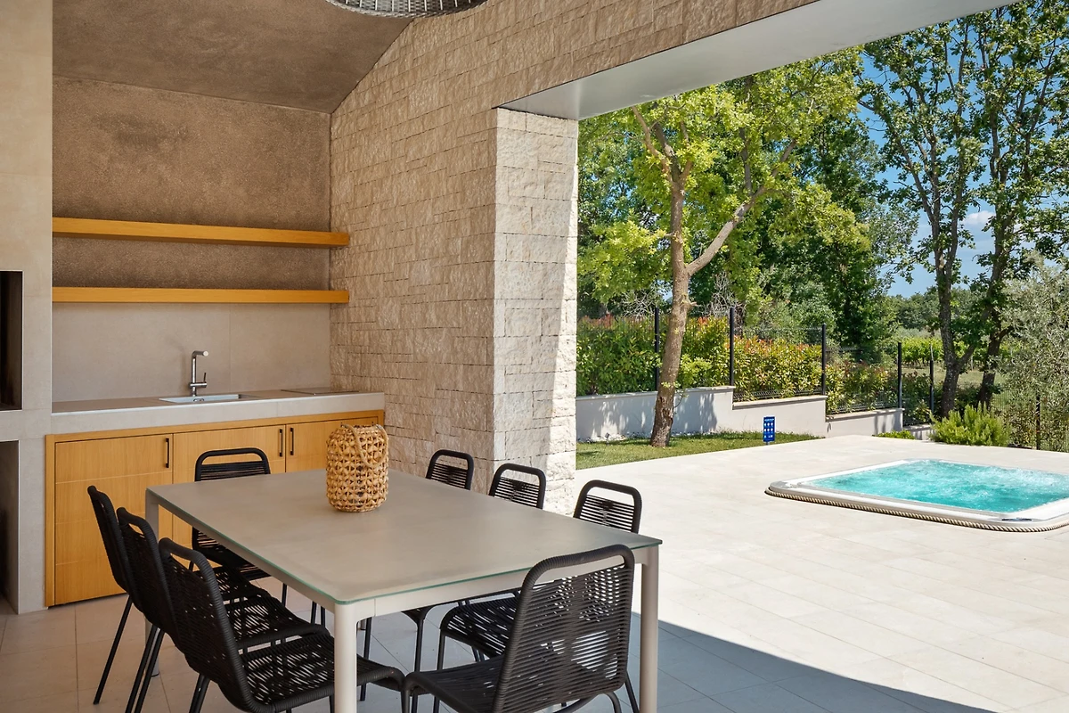 Die Villa Curitico befindet sich am Rande des ruhigen Dorfes Kadumi, nicht weit von Poreč entfernt. Diese moderne Villa verfügt über 4 Schlafzimmer und 4 Bäder und ist für 8 Personen geeignet. Von jeder Ecke des Hauses und des Innenhofs blickt man auf den wunderschönen mediterranen Garten sowie auf die endlosen Grünflächen und Weinberge der Umgebung.