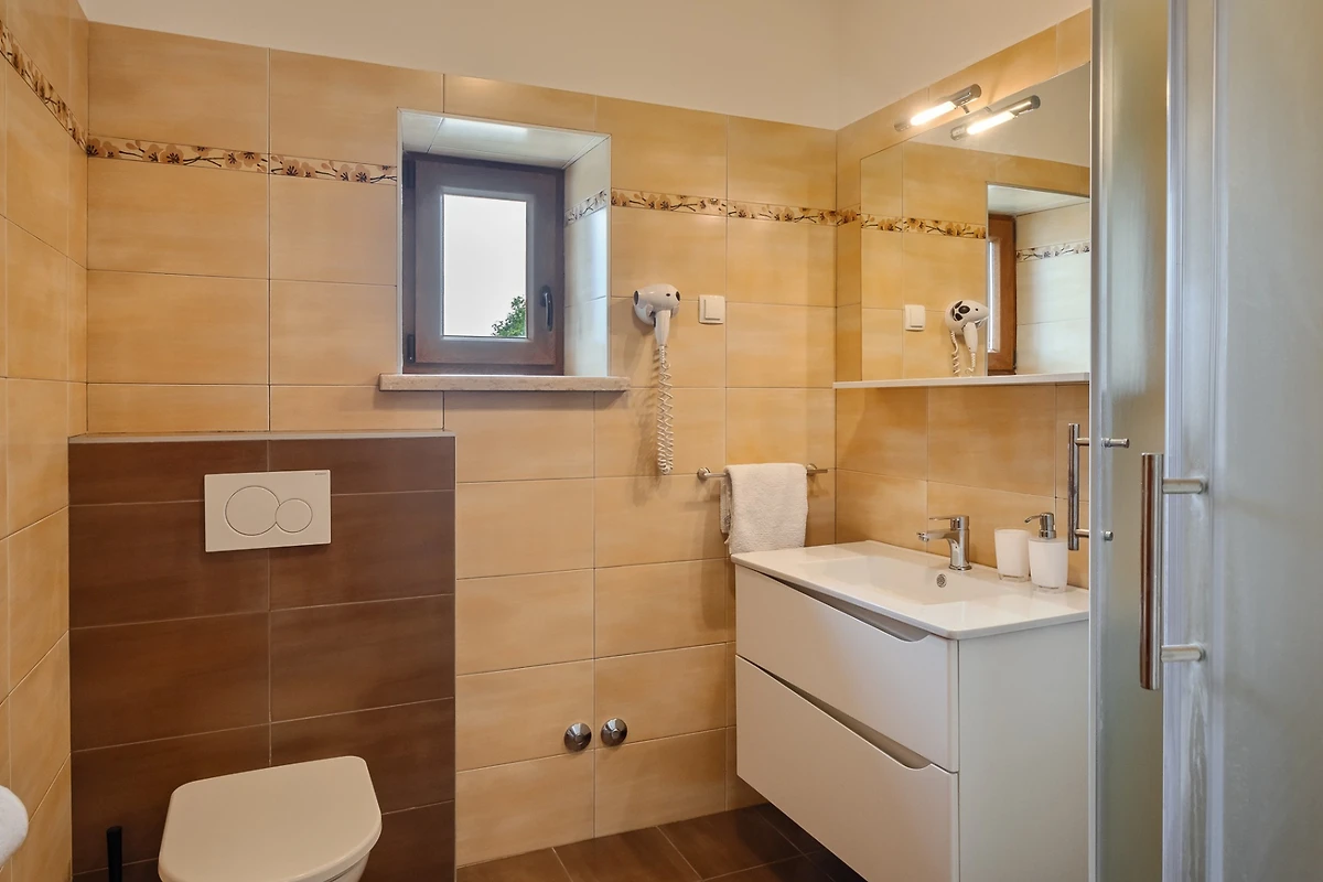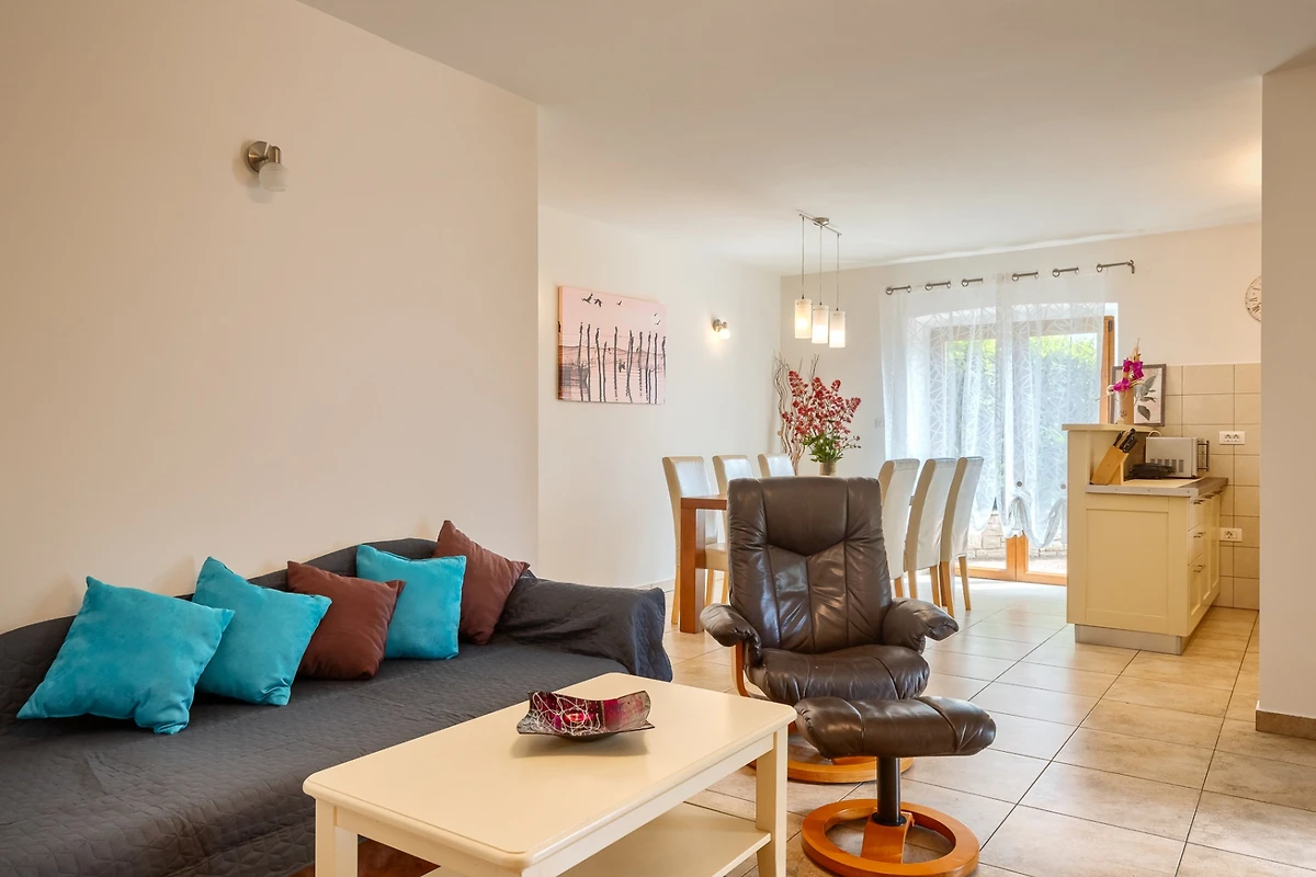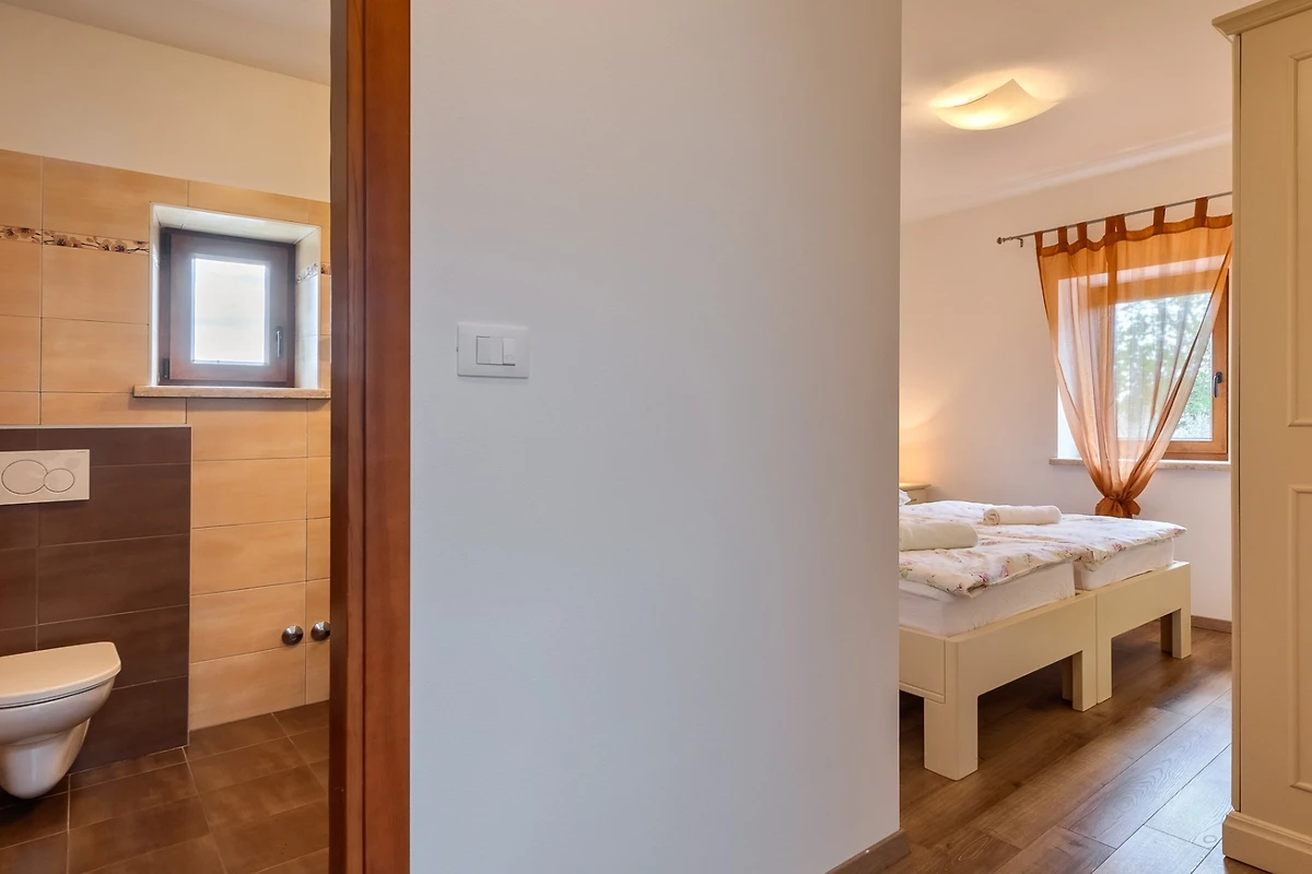 Die Villa Casa Mate liegt nur wenige Kilometer von der mittelalterlichen Stadt Pazin und eine halbe Autostunde von den touristischen Perlen Rovinj und Poreč entfernt. Wenn Sie in der Nähe Ihrer Unterkunft bleiben möchten, können Sie nichts falsch machen - Kringa ist bekannt für seine reiche Geschichte, die wunderschöne Natur und die authentische istrische Lebensart. Aktivurlauber können die zahlreichen Wege zu den Aussichtspunkten erklimmen und die Schönheit der Natur bewundern, und wer einen Hauch von Istrien erleben möchte, kann traditionelle Gerichte probieren - istrische Maneštra, Fuži oder hausgemachten Prosciutto.