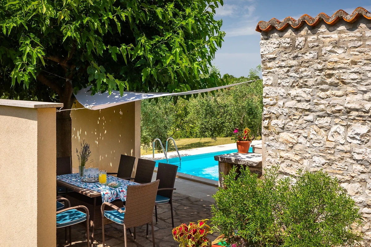 In der Nähe des Ortes Buje-Momjan, diese Villa für 8 Personen ist ideal für einen Urlaub mit Aussenpool.