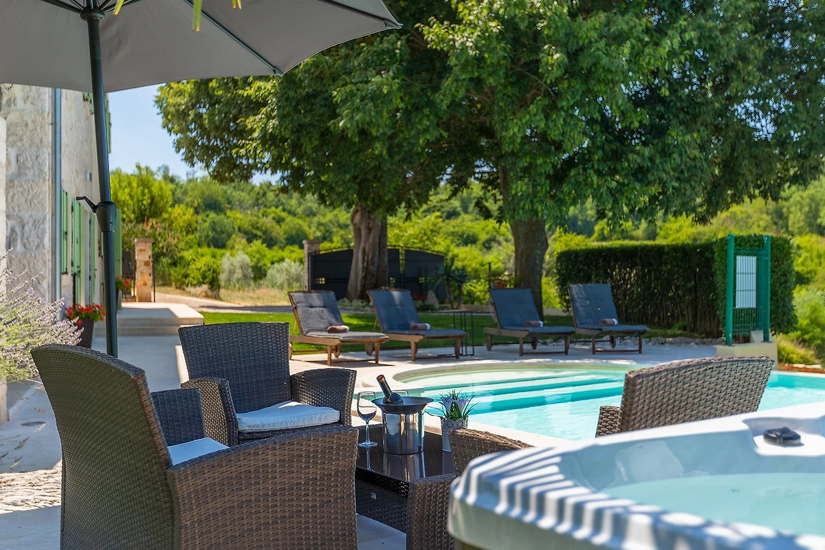 Zur Verfügung steht Ihnen ein 52 m² grosser Aussenpool und Liegen (6 Stück) für eine perfekte Nachmittagsetspannung in der Sonne. Geräumige Terrasse, Aussenkamin und Pool sind die ideale Wahl für das Geniessen der langen Sommerabende. Sie können sich keinen Urlaub ohne Grill vorstellen? Keine Sorge - zur Verfügung steht Ihnen ein Grill für die Zubereitung köstlicher Abendessen. Diese Villa ist für maximal 8 Personen geeignet und verfügt über 3 Schlafzimmer und 2 Badezimmer. Sie wollen in den Urlaub auch Ihr Haustier mitbringen? Natürlich - die Haustiere sind willkommen.