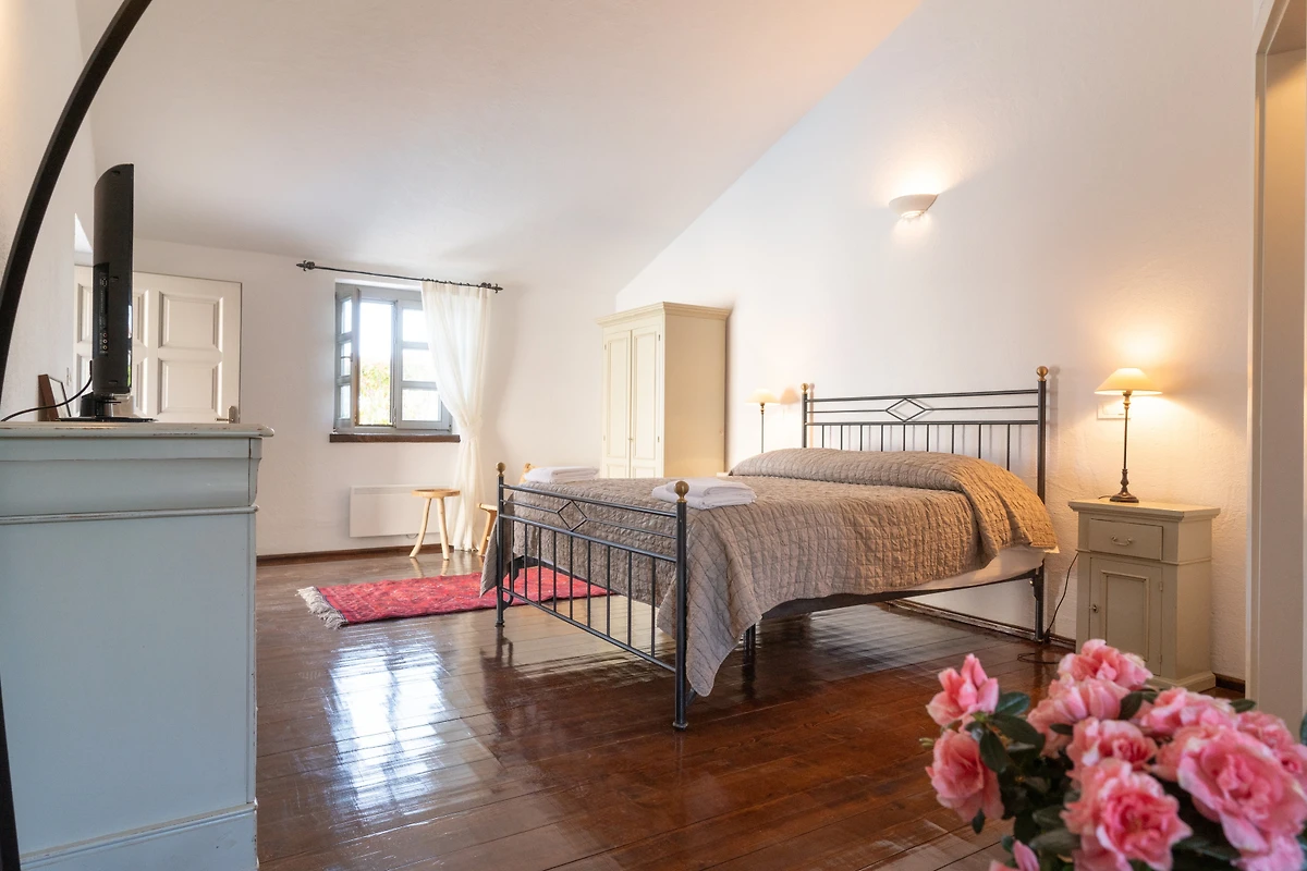 Dieses Ferienhaus bietet ihren Gästen 243 m² Wohnfläche und besteht aus 2 Etagen. Im Erdgeschoss befindet sich ein geräumiges Wohnzimmer, das von einem romantischen Kamin dominiert wird. Das Wohnzimmer ist mit einem Sofa, das als Zusatzbett für zwei Personen genutzt werden kann, und einem 65"-Fernseher ausgestattet und eignet sich ideal für entspannte Abende. Neben dem Wohnzimmer gibt es ein Esszimmer mit einem Tisch für 8 bis 10 Personen und eine rustikale, voll ausgestattete Küche, in der Sie köstliche Mahlzeiten zubereiten können. Neben modernen Möbeln in warmen und erdigen Farben ist der Raum mit verschiedenen Antiquitäten angereichert, die einen Hauch von Mittelmeer vermitteln. Alle Zimmer sind klimatisiert und für kältere Tage steht eine Zentralheizung zur Verfügung.