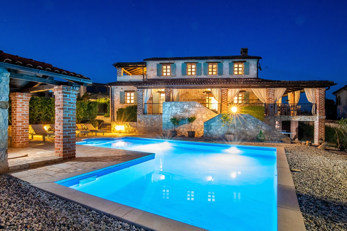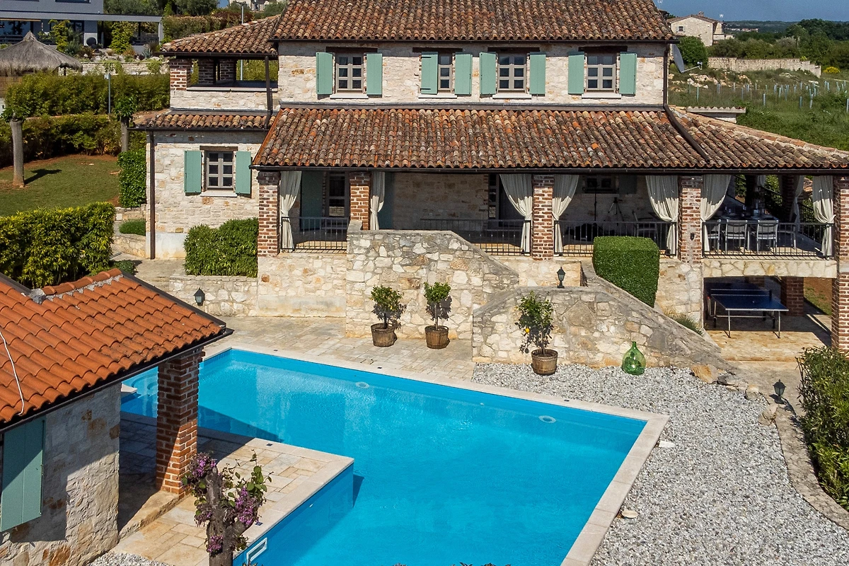 Im Herzen der mittelalterlichen Stadt Sveti Lovreč finden Sie die Villa Amyra. Diese luxuriöse Villa mit 4 Schlafzimmern wurde 2011 gebaut und 2022 komplett renoviert. Sie zeichnet sich durch einen traditionellen Baustil aus, der istrianische und toskanische Architektur kombiniert. Sie ist für maximal 10 Personen ausgelegt, wobei die optimale Anzahl 8 Personen ist.