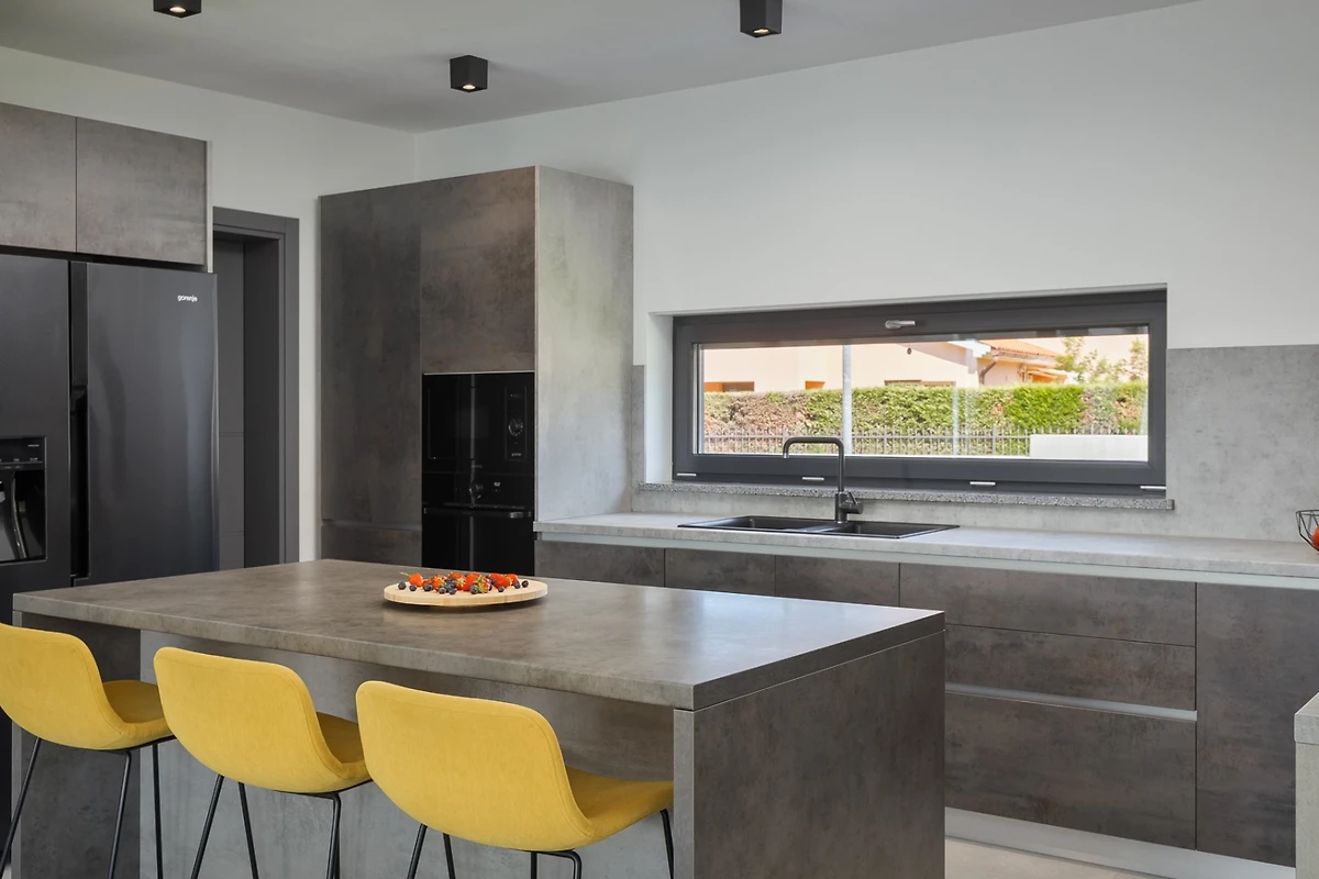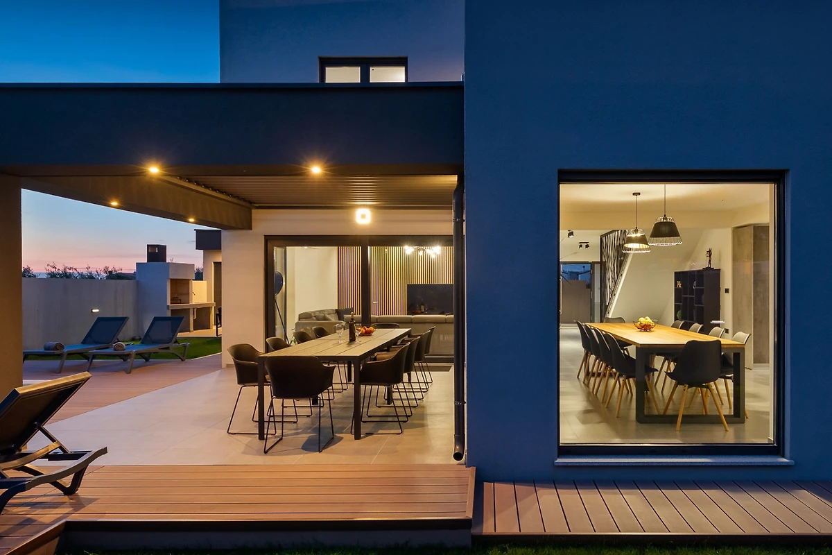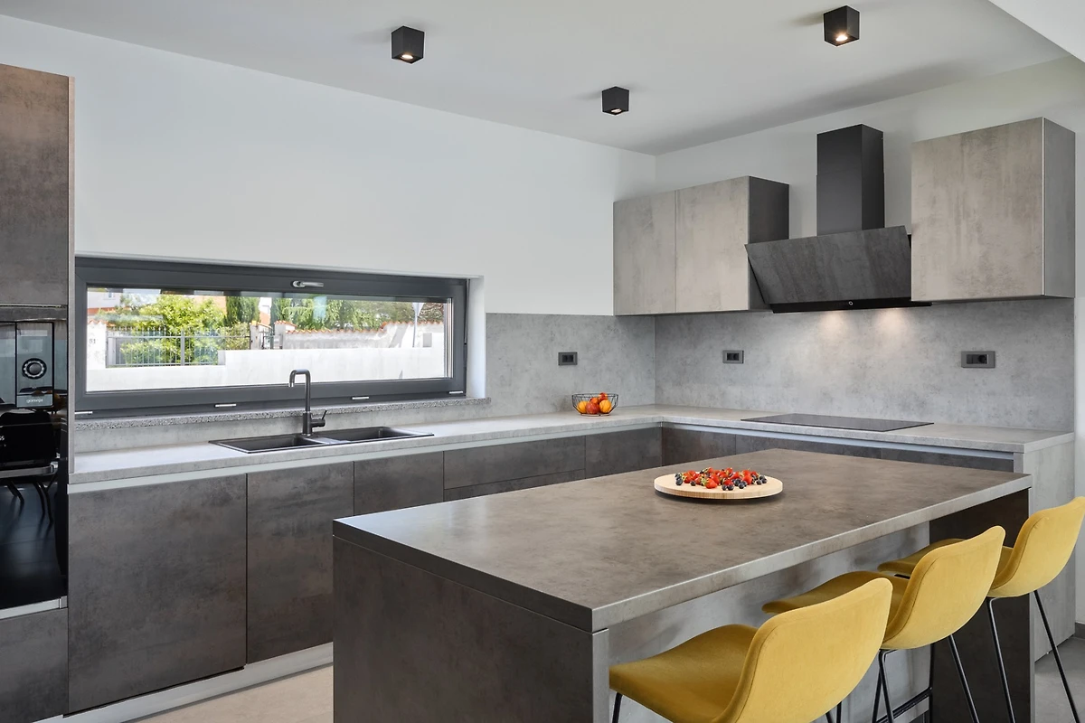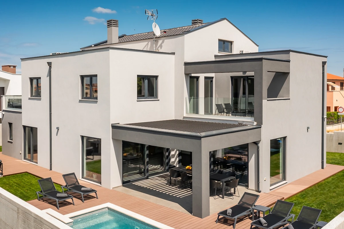 Die moderne Villa Nea befindet sich in Pula, der grössten Stadt Istriens und einem kulturellen und historischen Juwel. Sie ist perfekt für Liebhaber moderner Architektur und bietet auf 300 m² mit 5 Schlafzimmern und 5 Bädern Platz für bis zu 10 Gäste. Auf dem mit Überwachungskameras gesicherten Gelände gibt es einen Aussenpool mit Liegewiese, einen Grill mit Essbereich im Freien und ein Trampolin für die Jüngsten, und vom Balkon aus kannst du einen beeindruckenden Blick auf das Zentrum von Pula geniessen. Das Gelände verfügt über ein Sicherheitsalarmsystem und es sind keine Partys in der Villa erlaubt.