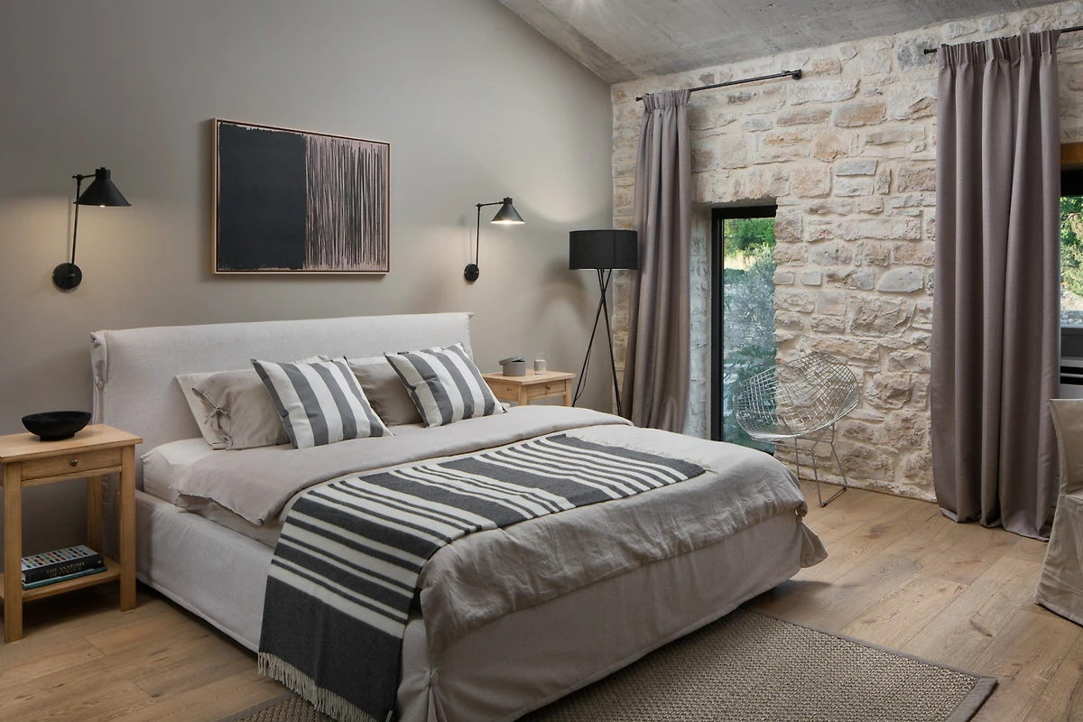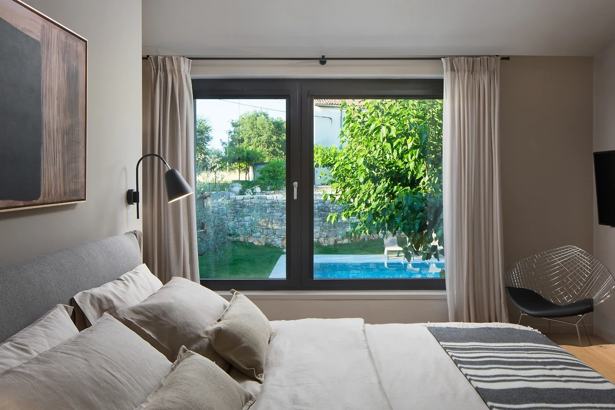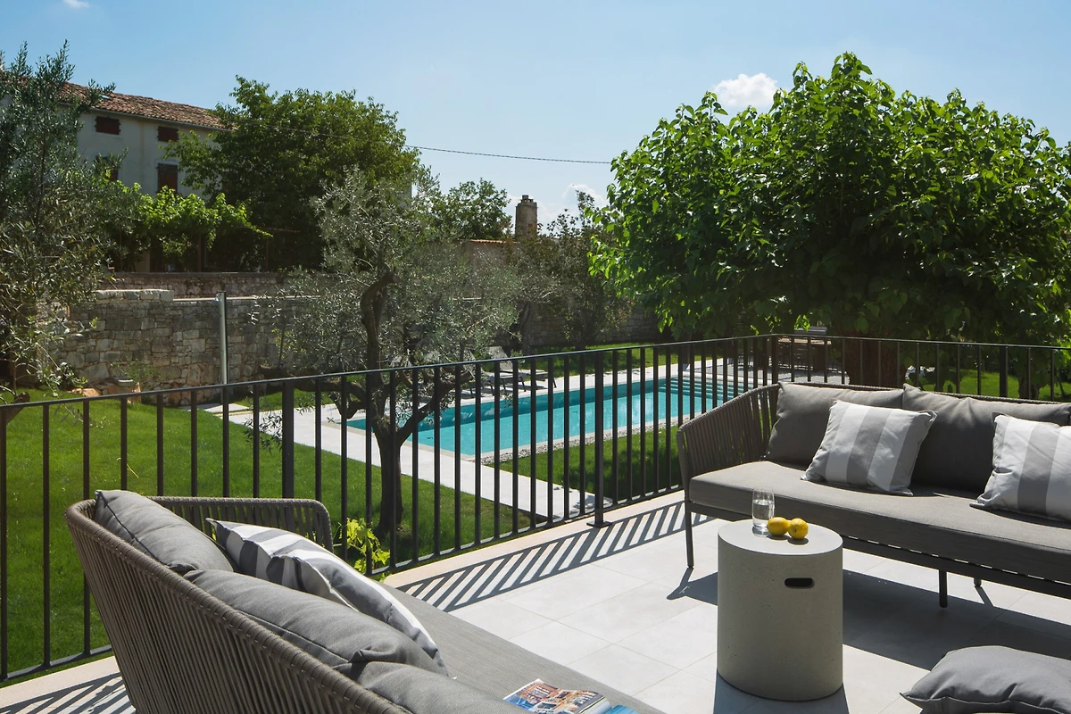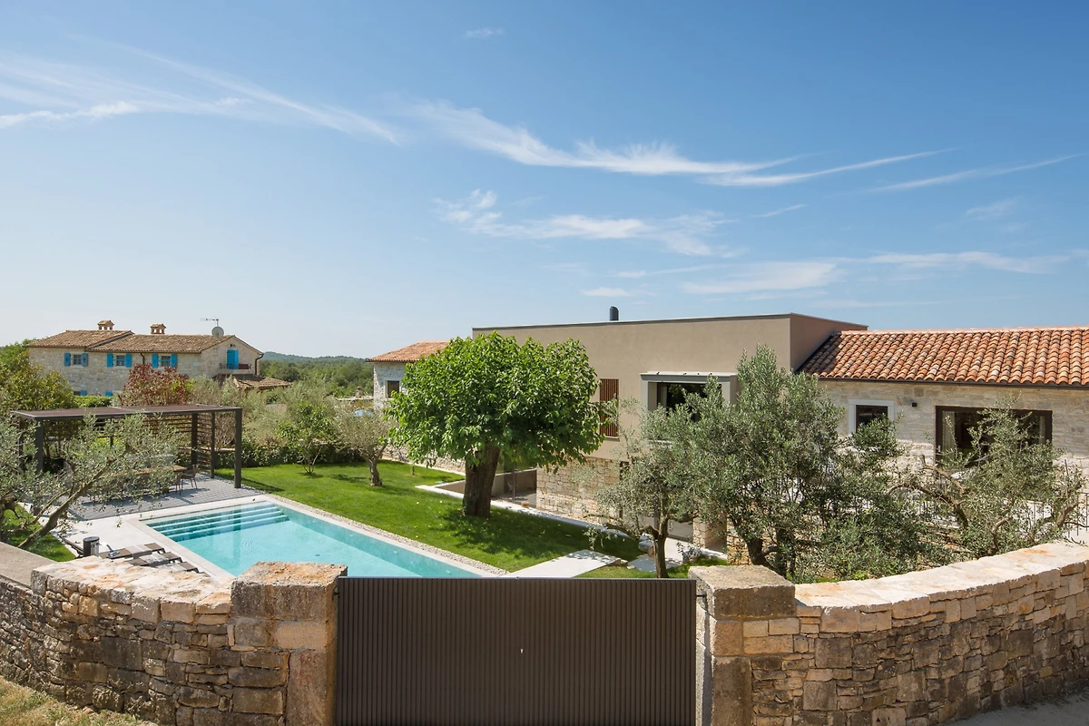 Die Villa Melon befindet sich im Dorf Kirmenjak, im Landesinneren von Istrien. Diese moderne Villa mit 5 Schlafzimmern hat ein auffälliges Äusseres, das Tradition und Moderne verbindet, was sich auch im Inneren widerspiegelt. Jedes Detail der Einrichtung wurde sorgfältig geplant, um Ihren Aufenthalt so angenehm und komfortabel wie möglich zu gestalten. Der 1000 m² grosse Garten bietet viel Platz für geselliges Beisammensein und einen Swimmingpool zur Erfrischung an heissen Sommertagen. Die Villa ist für 10 Personen ausgelegt.