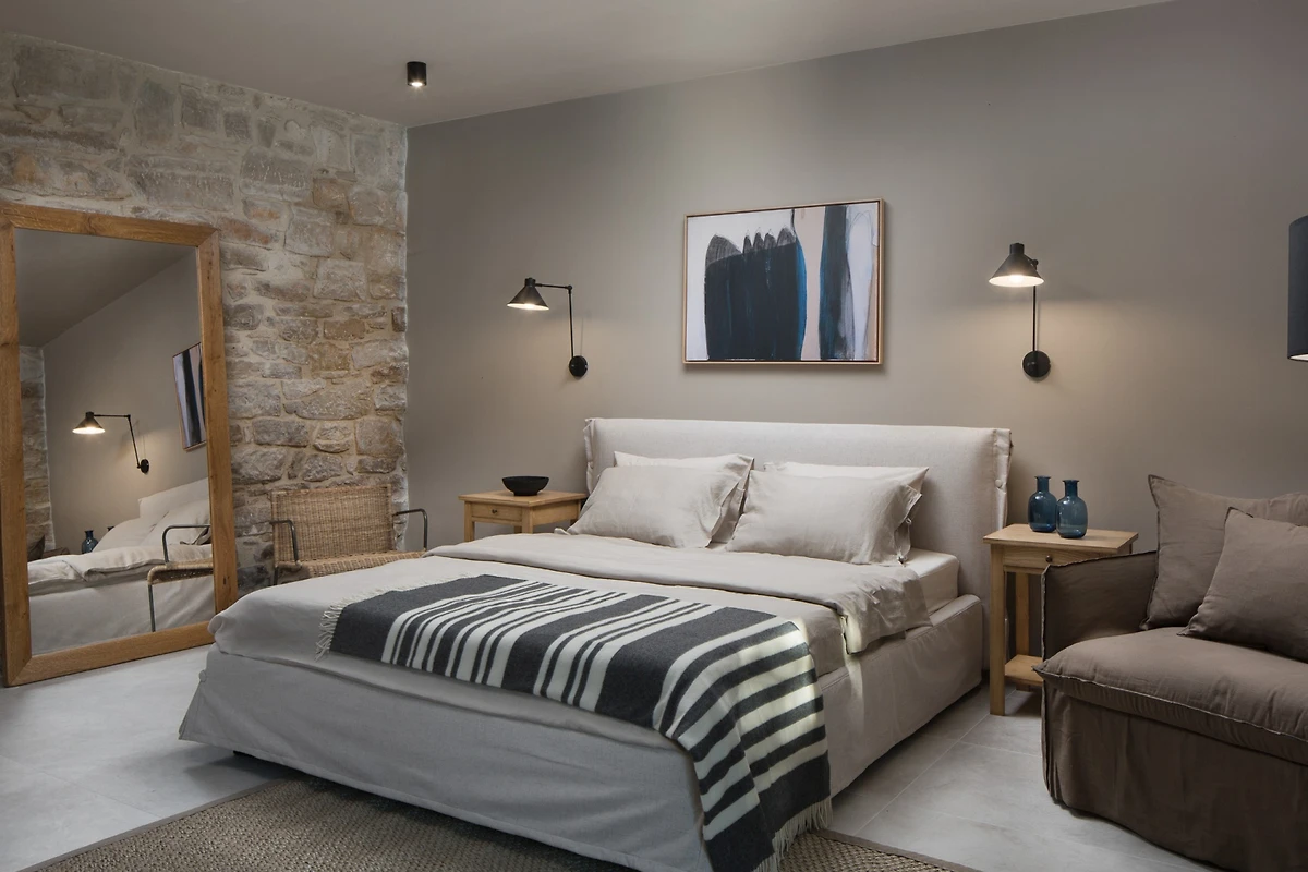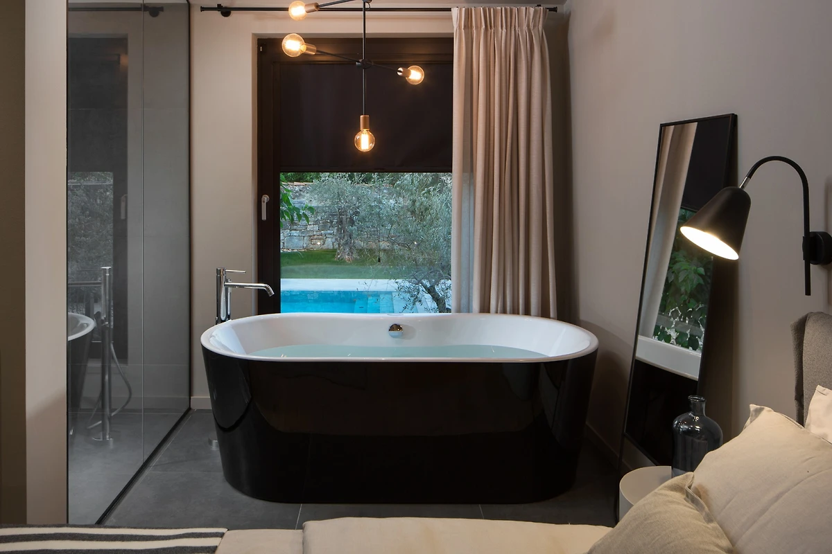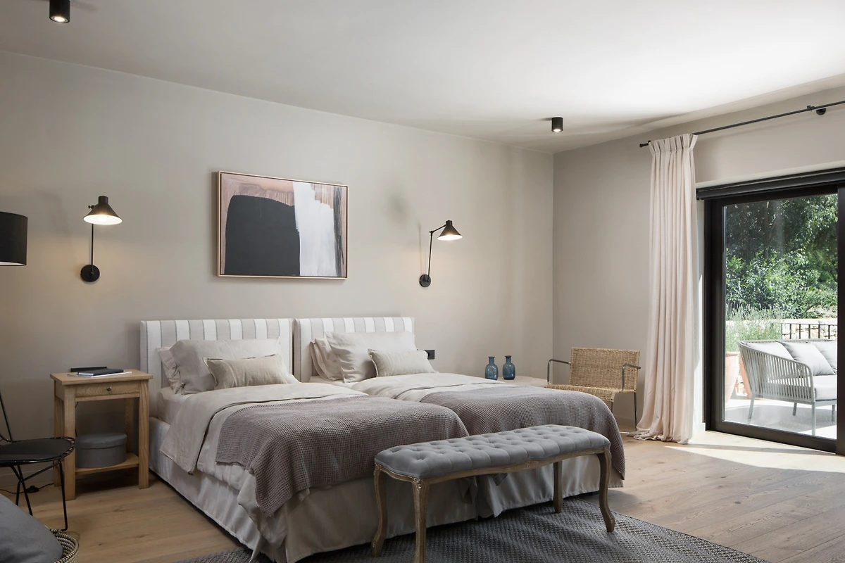 In der Villa Melon gibt es 5 Schlafzimmer und sogar 6 Bäder, so dass es keine Wartezeiten gibt. Alle Schlafzimmer verfügen über ein eigenes, geschmackvoll eingerichtetes Bad für maximalen Komfort. Jedes Zimmer ist sehr geräumig, hat eine Klimaanlage und SAT-TV. Jedes Zimmer hat einen Blick auf den Innenhof und einige Zimmer verfügen über eine eigene Terrasse mit Lounge-Bereich. Den Zucker haben wir uns für den Schluss aufgehoben. Wenn Sie das Glück haben, eines der Zimmer im Erdgeschoss zu bekommen, werden Sie nichts Geringeres als eine Badewanne direkt neben dem Bett vorfinden.