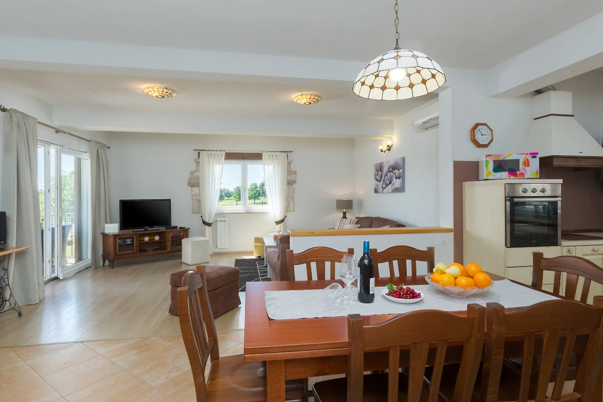 Entdecken Sie die perfekte Familien- und Paarrückzugsstätte in Sveti Lovrec mit diesem charmanten 130 m² Apartman Pianta. Eingebettet auf einem geräumigen 3000 m² grossen Grundstück bietet diese entzückende Immobilie einen komfortablen und einladenden Raum für bis zu 6 Gäste.