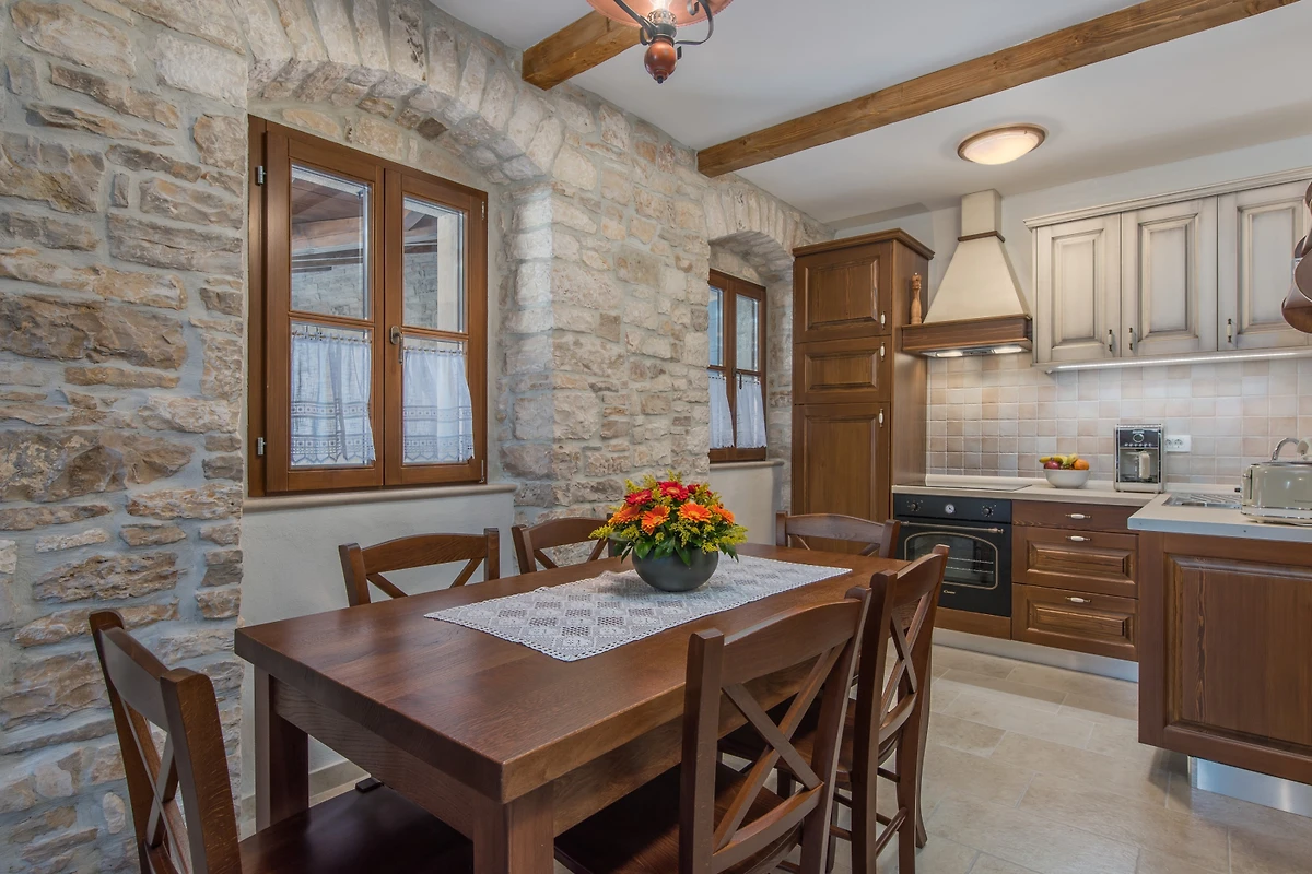 Heritage Villa Croc befindet sich in der idyllischen Atmosphäre des Inneren von Istrien, in der Nähe der Stadt Buje. Diese rustikale Steinvilla ist komplett renoviert worden. Sie wurde mit vielen modernen Elementen verschönert, hat aber den ursprünglichen Charakter bewahrt, der sich in den Steinmauern und Holzbalken widerspiegelt. Es gibt auch klassische blaue Fensterläden, die an das Meer erinnern, das nicht nah, aber auch nicht fern ist. Die Villa verfügt über 2 Schlafzimmer und 2 badezimmer und kann bis zu 6 Personen beherbergen.