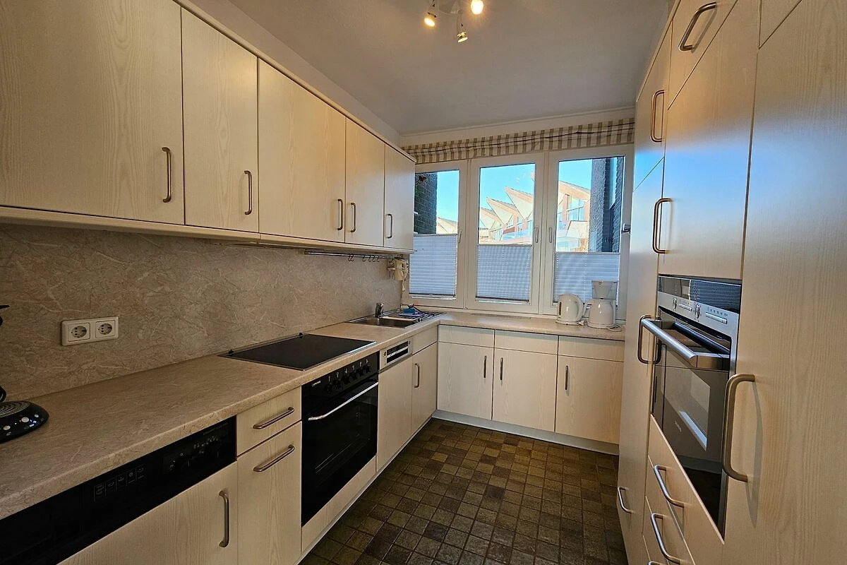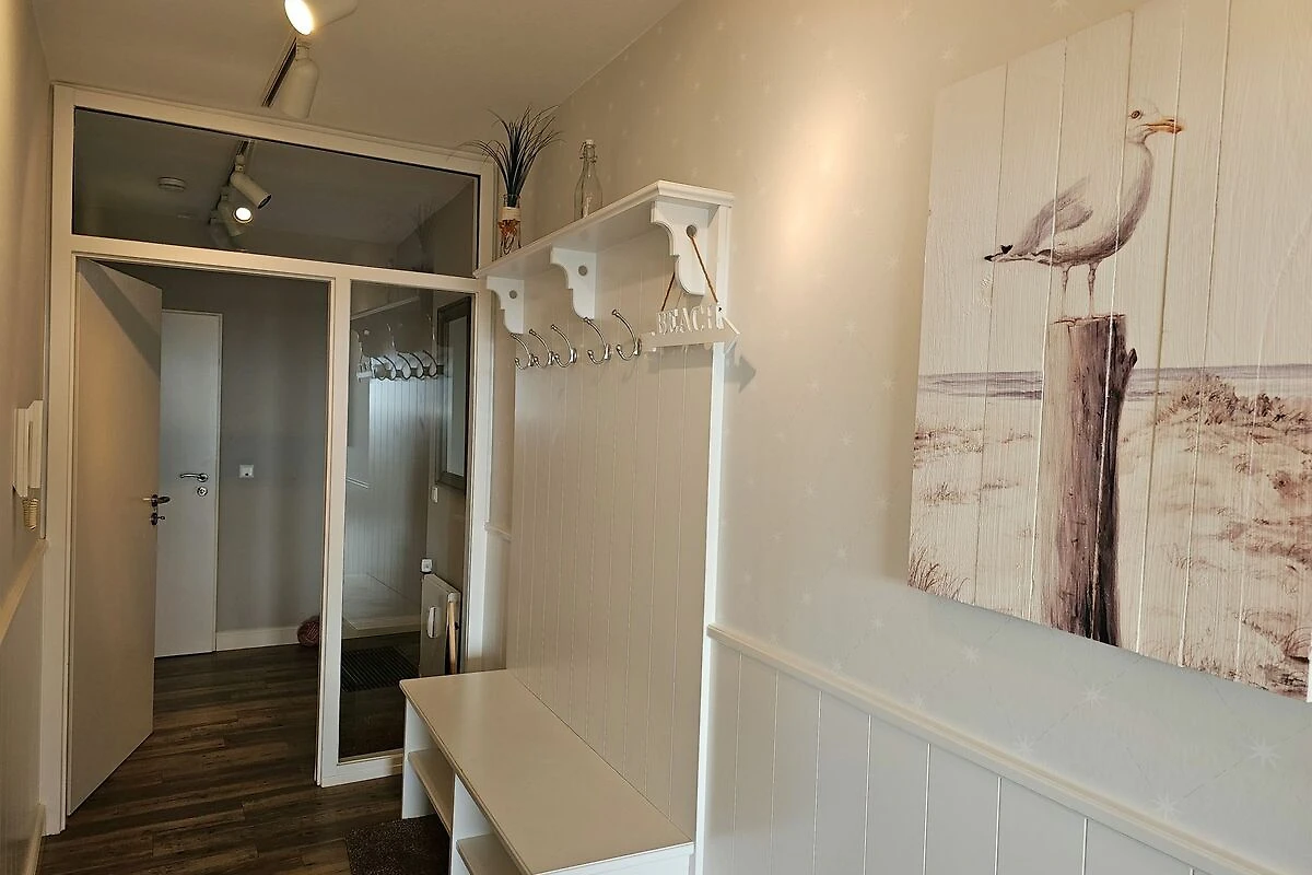 Die modern ausgestattete Wohnung bietet WLAN/Internet, einen Balkon mit Meerblick sowie Zugang zum Schwimmbad im Appartementhaus. Ein eigener Parkplatz ist ebenfalls vorhanden. Für erholsame Stunden steht den Gästen ausserdem eine gemeinschaftliche Sauna zur Verfügung. Fahrräder können in einem abschliessbaren Fahrradraum untergestellt werden.