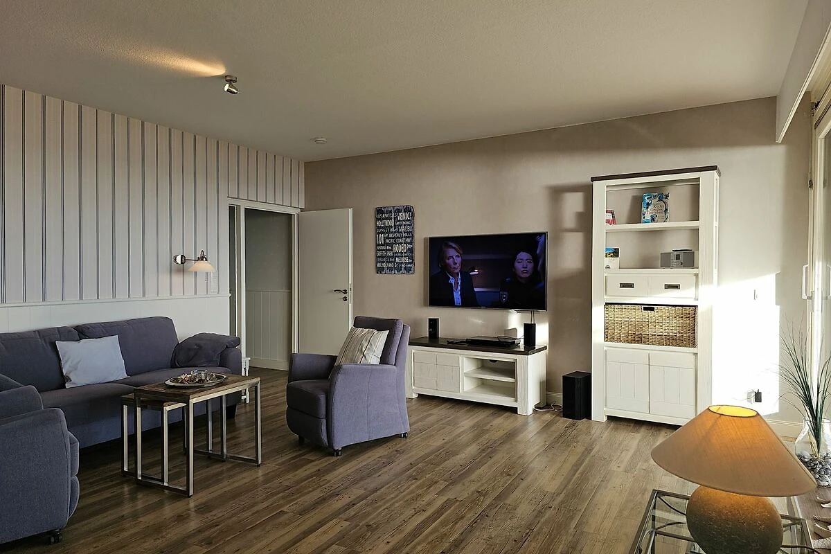 Sie verfügt über 2 Schlafzimmer und 1 Badezimmer und befindet sich im Haus Bi de Wyk im Hochparterre.