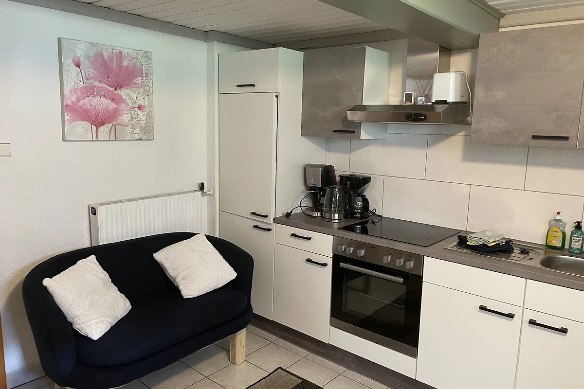 Die Küche ist komplett mit modernen Geräten ausgestattet, darunter eine Mikrowelle, ein Wasserkocher und eine Kaffeemaschine. Außerdem gibt es einen Balkon, von dem aus Sie die schöne Aussicht auf die umliegenden Berge und die Natur genießen können.