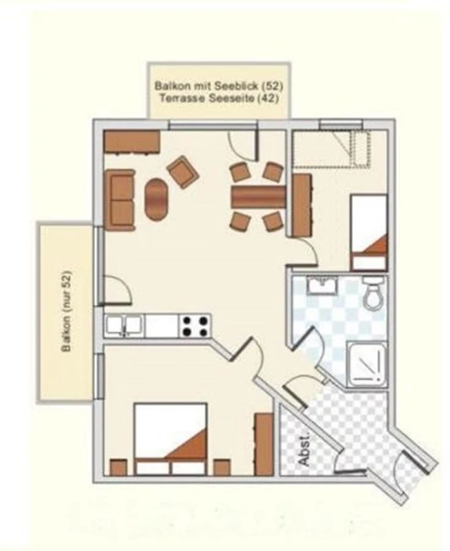 Es stehen Ihnen ein Wohnzimmer mit Küchenzeile , ein Schlafzimmer mit Doppelbett und Fernseher, und ein Schlafzimmer mit zwei Einzelbetten zur Verfügung. Als fünftes Bett kann ein Klappbett 90x200cm dazu gestellt werden. Ein Badezimmer mit Dusche/WC und Spiegelschrank und Fön, sowie ein Flur mit Garderobe und ein Abstellraum.