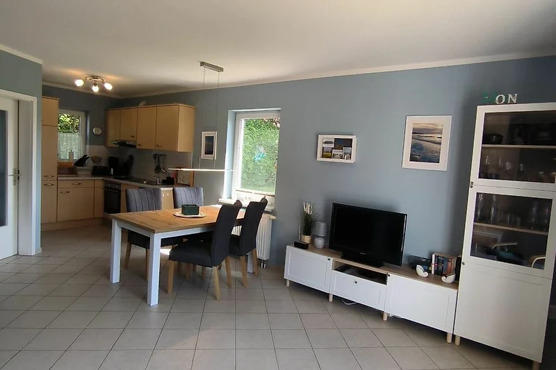 Im Erdgeschoss gibt es einen schönen Wohnbereich mit einer voll ausgestatten offenen Küche, sowei ein Gäste-WC.