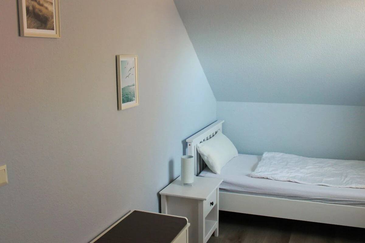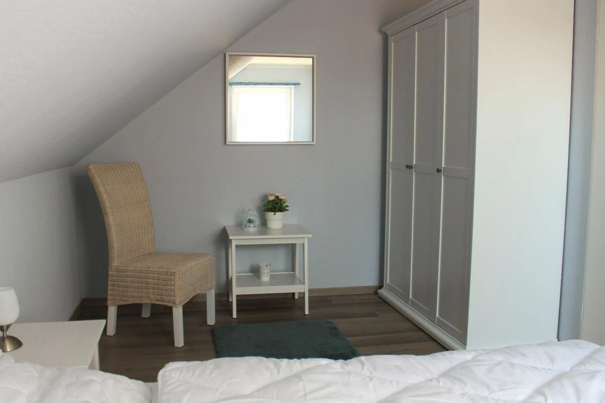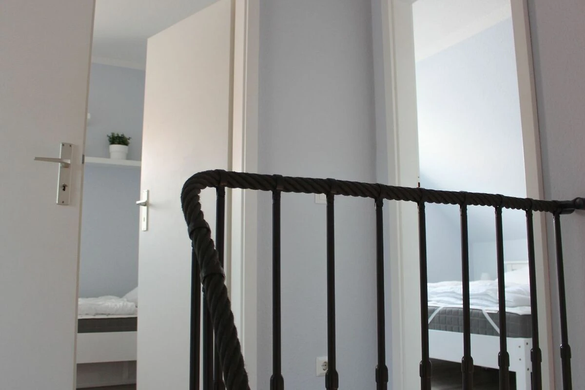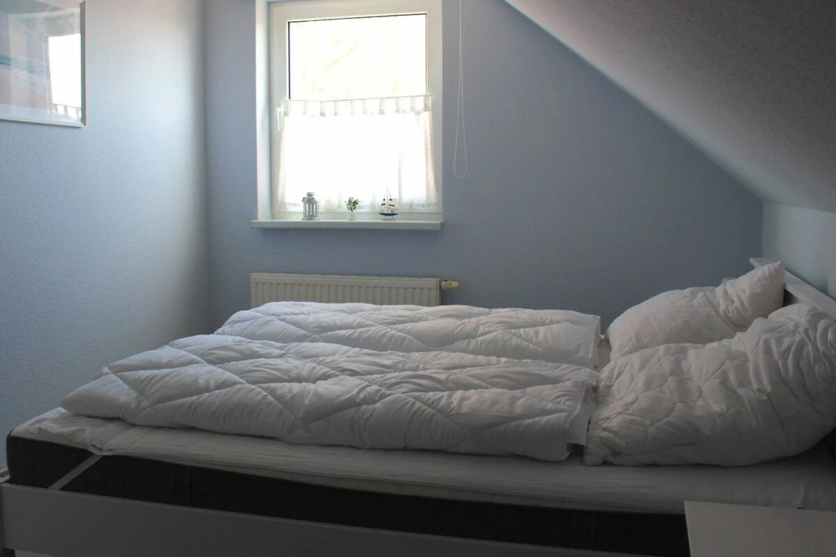 In dem Ferienhaus Ferienglück, gibt es zwei Schlafzimmer mit einem Doppelbett ( 180x200 cm) und zwei Einzelbetten (90x200 cm), im OG befindet sich ein Badezimmer mit Dusche und WC.