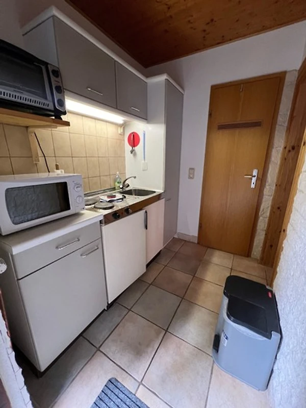 Die Ferienwohnung Nr. 2 verfügt über eine kleine Küche, einem Wohnzimmer mit TV, Esstisch und Kinderstuhl, einem Badezimmer (WC/Dusche/Föhn), einem Schlafzimmer mit Doppelbett sowie einem separaten Schlafzimmer mit Einzelbett. Die Küche ist wie folgt ausgestattet: Toaster, Kaffeemaschine, Wasserkocher, Kühlschrank mit Gefrierfach, Mini-Backofen, Mikrowelle und Putzutensilien.