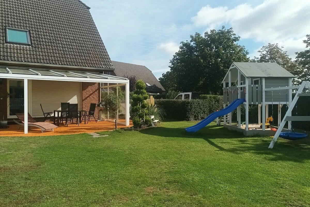 Direkten Zugang zum Garten erhält man über die überdachte Terrasse. Hier kann entspannt und gegrillt werden, während die Kinder auf dem Spielplatz spielen.