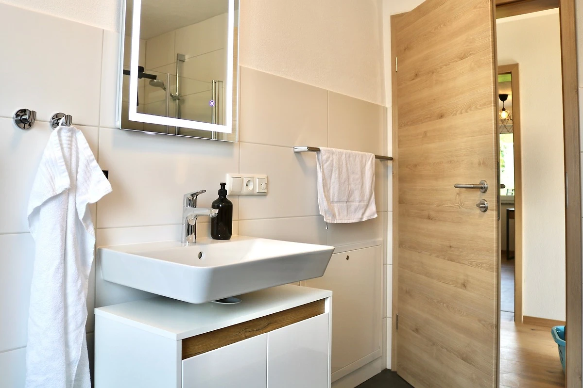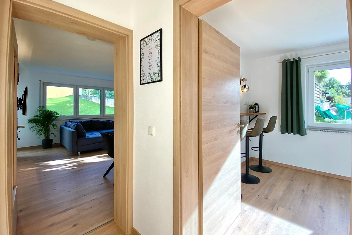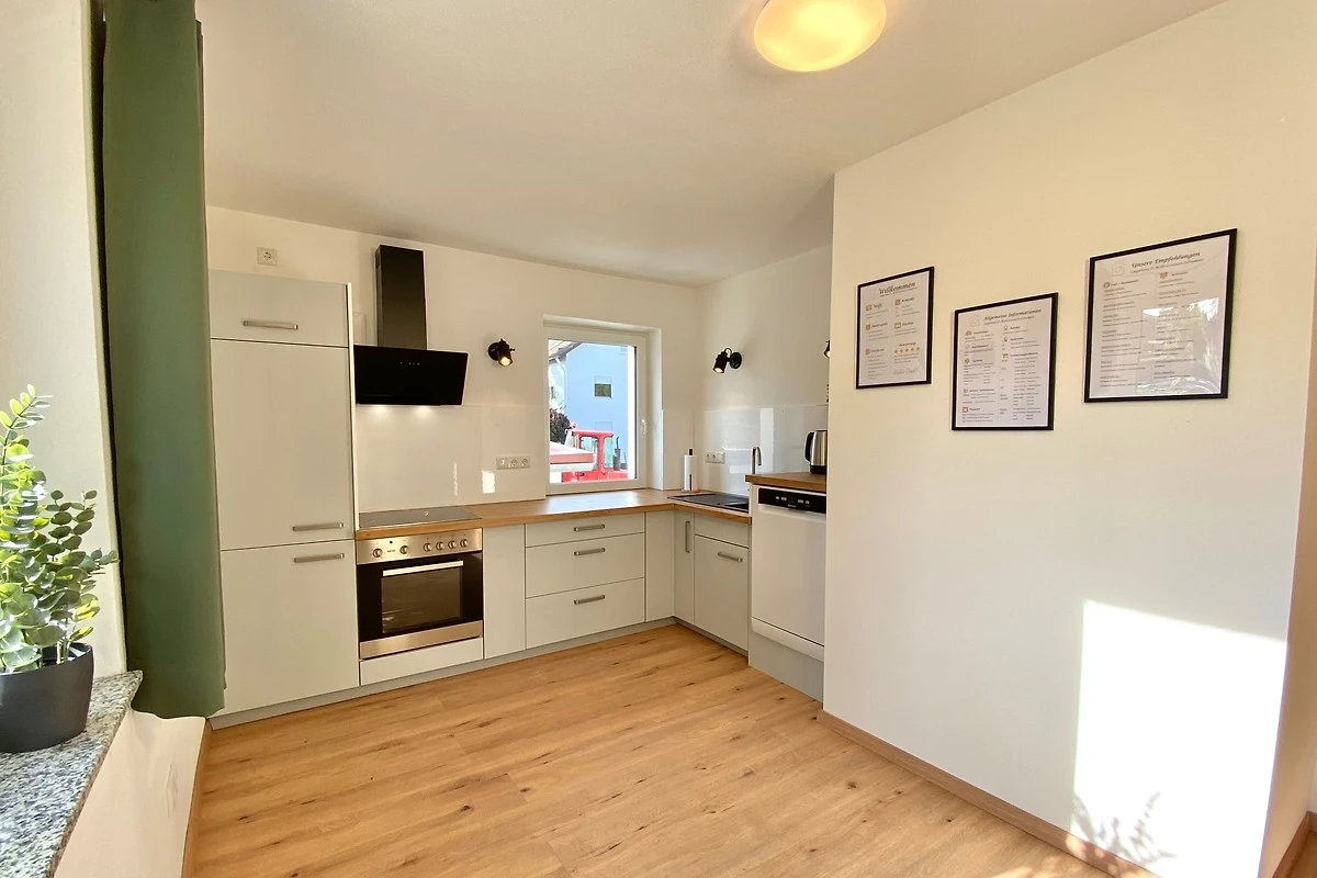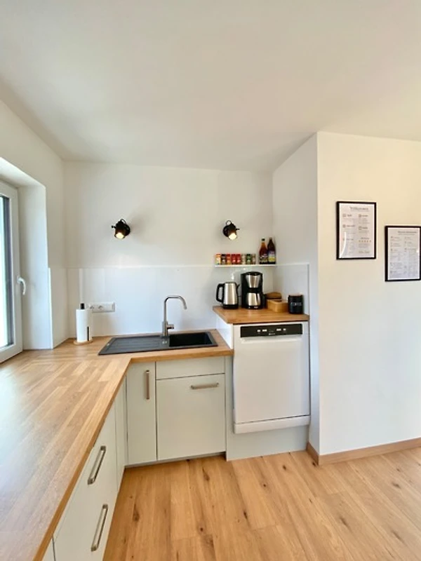 Zu der Ferienwohnung gehört auch ein PKW - Stellplatz. Die nächsten Einkaufsmöglichkeiten finden Sie in 1 km Entfernung.